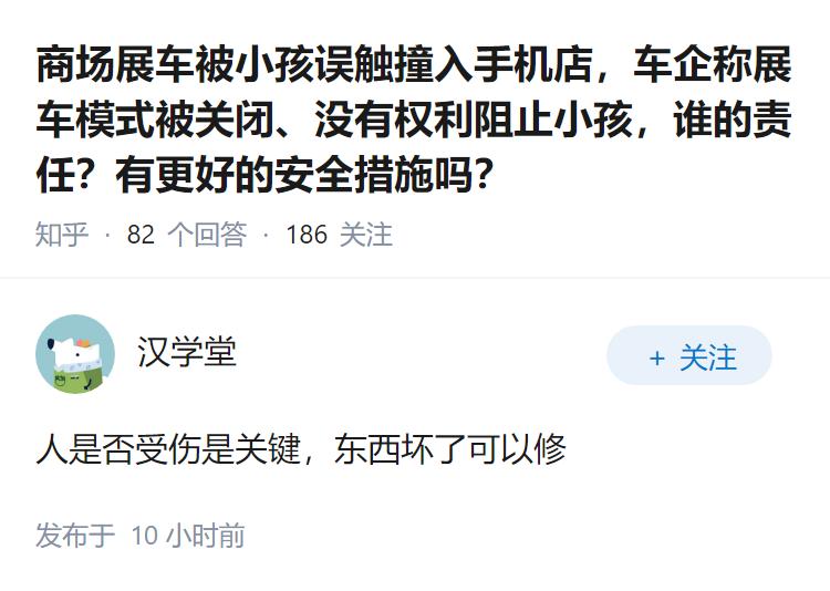 商场展车被小孩误触撞入手机店,车企称展车模式被关闭、没有权利阻止小孩,谁的责任?有更好的安全措施吗?