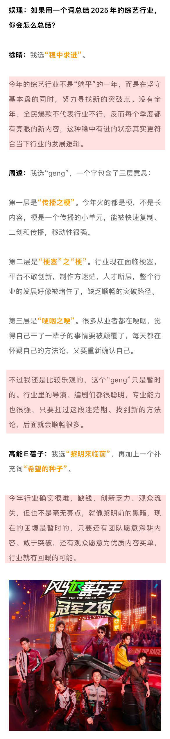 业内谈唐国强刘晓庆回流综艺 2025综艺没有躺平 谈及资深艺人综艺表现,学者周逵坦言:“最难的其实是行业的集体迷茫和人才断层。导演、编剧们每天都在反思自己的方法论,资深从业者在怀疑过去的经验,年轻团队又出不来。再加上艺人复用率太高,可用的人越来越少,只能找唐国强、刘晓庆这些‘常青树’回流综艺圈,年轻面孔不够用了。”娱理独家↓