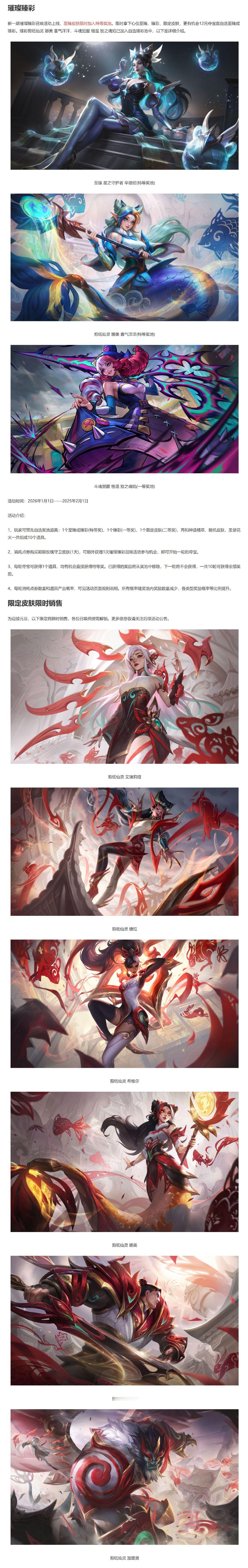 新的祥龙秘宝首次6米100%一款皮肤回归!璀璨臻彩上新,剪纸限定皮肤限时上架。英雄联盟
