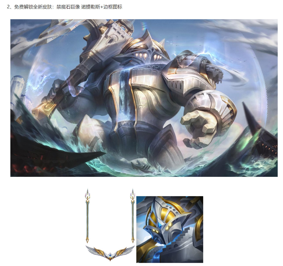 2026德玛西亚新赛季活动:免费解锁全新皮肤:禁魔石巨像诺提勒斯+边框图标英雄