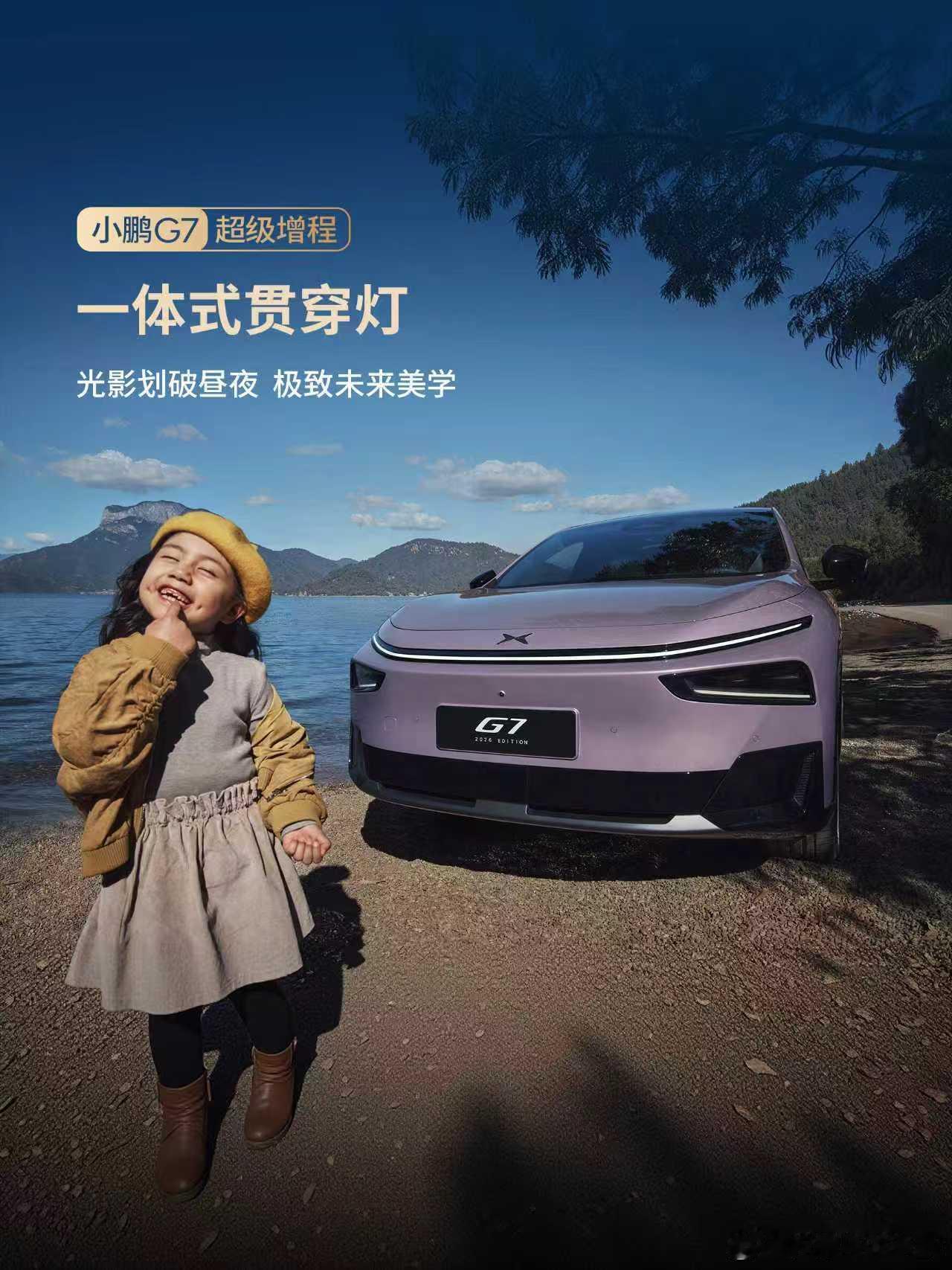 1704公里超长续航SUV小鹏G7来了小鹏G7超级增程颜值与实力双杀!小鹏G7超级增程全新外观色星暮紫上线,把温柔优雅直接具像化,一眼沦陷~一体式贯穿灯+20英寸运动轮毂+Power X专属尾标,颜值拿捏到位;副驾零重力座椅领衔超20项越级豪华配置,超大空间坐享舒适,出行仪式感直接拉满!核心硬实力更能打:自研图灵芯片算力达2250TOPS,综合续航1704公里跨越大半个中国,纯电430公里实现城市通勤一周一充,续航焦虑从此是路人,每段出行都从容自在!小鹏汽车