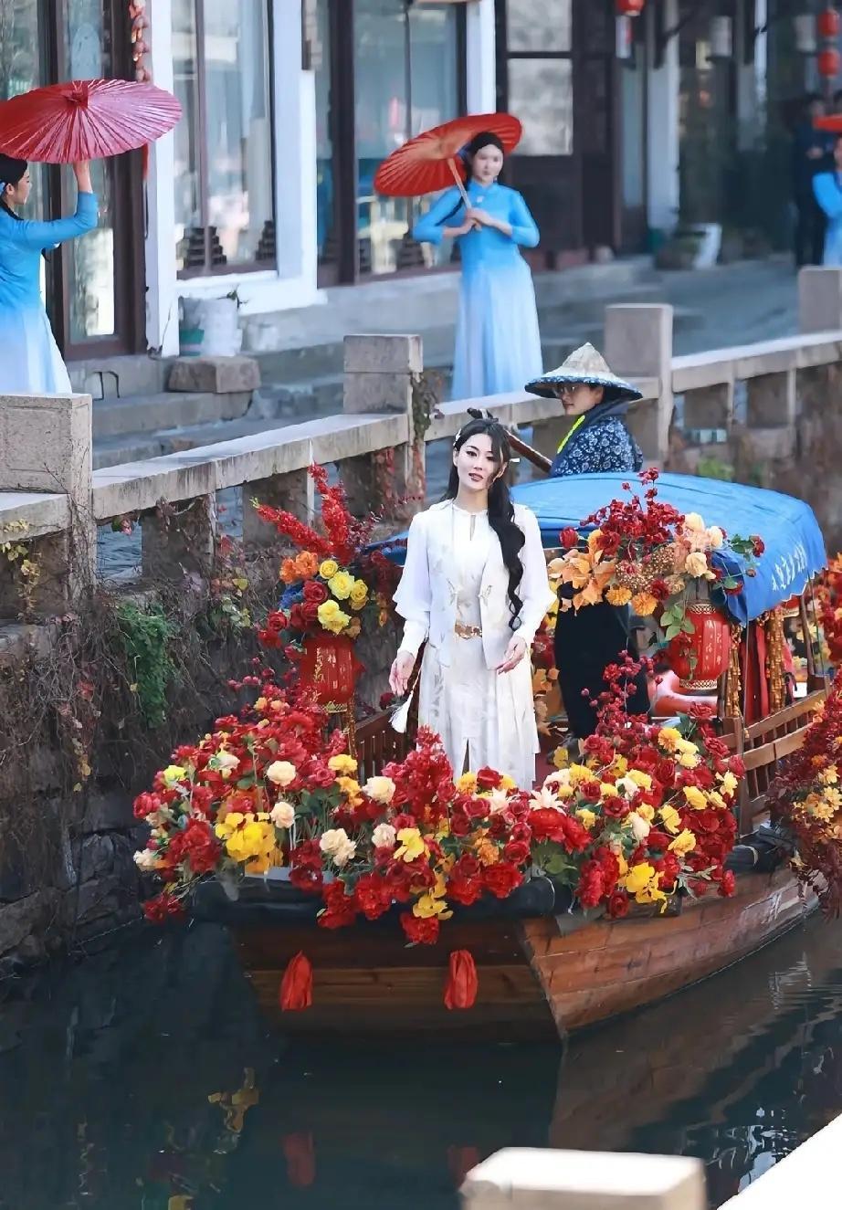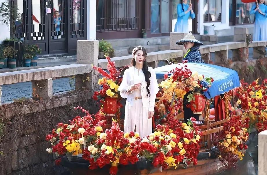 靠嫁人实现口碑逆袭的,恐怕就只有张馨予了,嫁给军人何捷的她,婚后过得幸福,整个人都越来越美了,张馨予在苏州周庄古镇进行拍摄任务,她穿着一套新中式长裙,站在花船上,美得真是让人移不开眼,随便哪个角度拍都很漂亮。