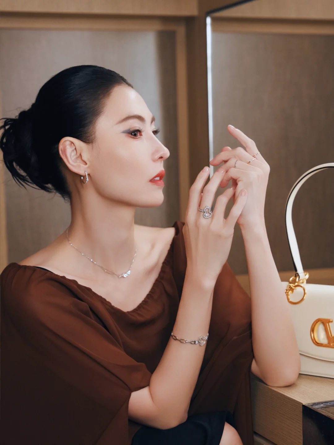 实力!张柏芝今天这造型又闯入我心巴! 琥珀色的雪纺上衣,自带一种低调又奢华的氛围感,把她的优雅气质衬托得淋漓尽致。搭配Valentino那精致的单肩包,高级感直线飙升✨ 佩戴的Qeelin项链、戒指、项链……每一件都像是为她量身定制,在灯光下闪耀着迷人光芒,和整体造型完美融合。 不得不说,张柏芝真的太绝了,这么多年过去,她的时尚品味依旧在线,随便一穿就是时尚大片的既视感,狠狠羡慕住了! 图源来自:张柏芝