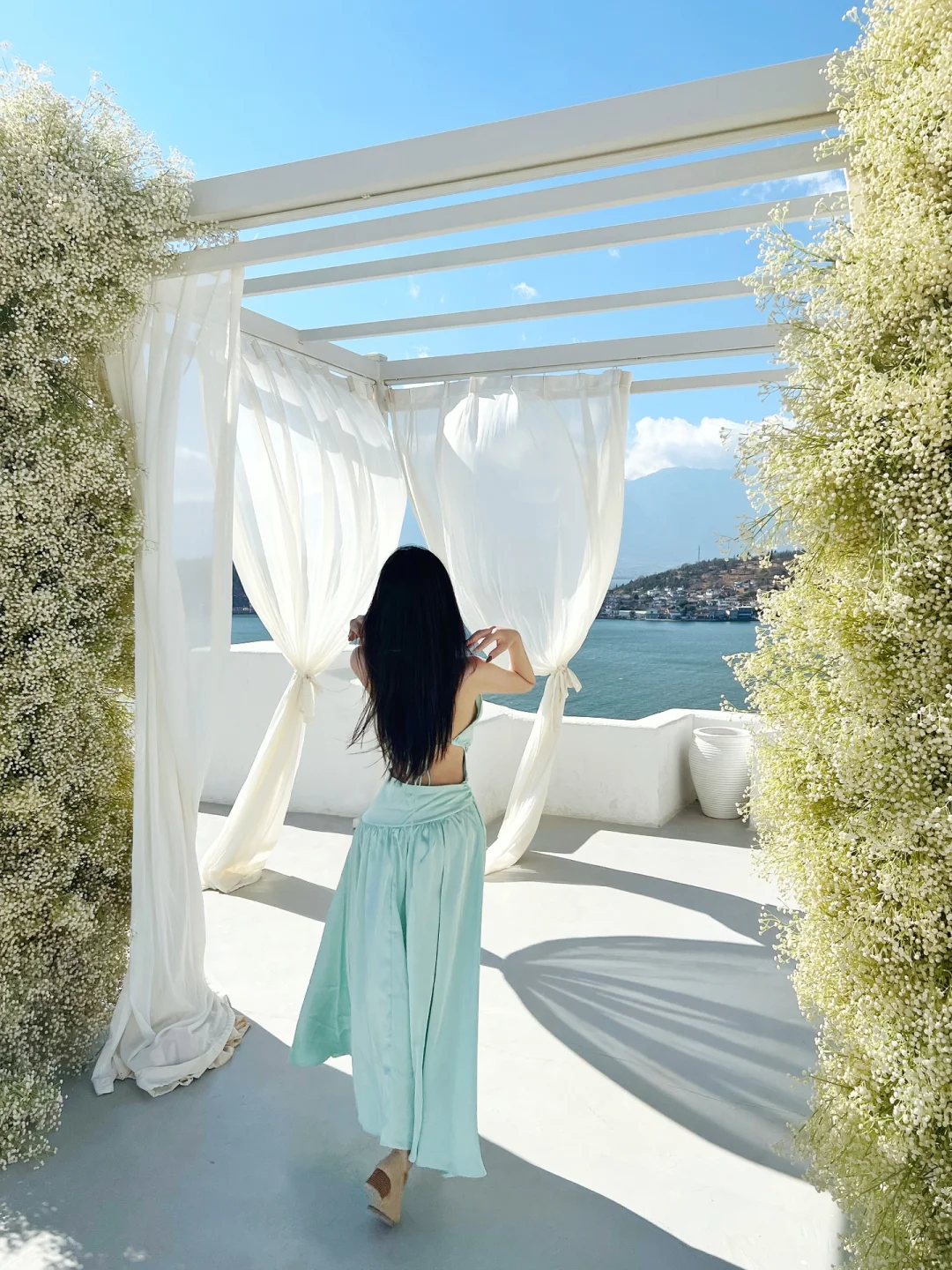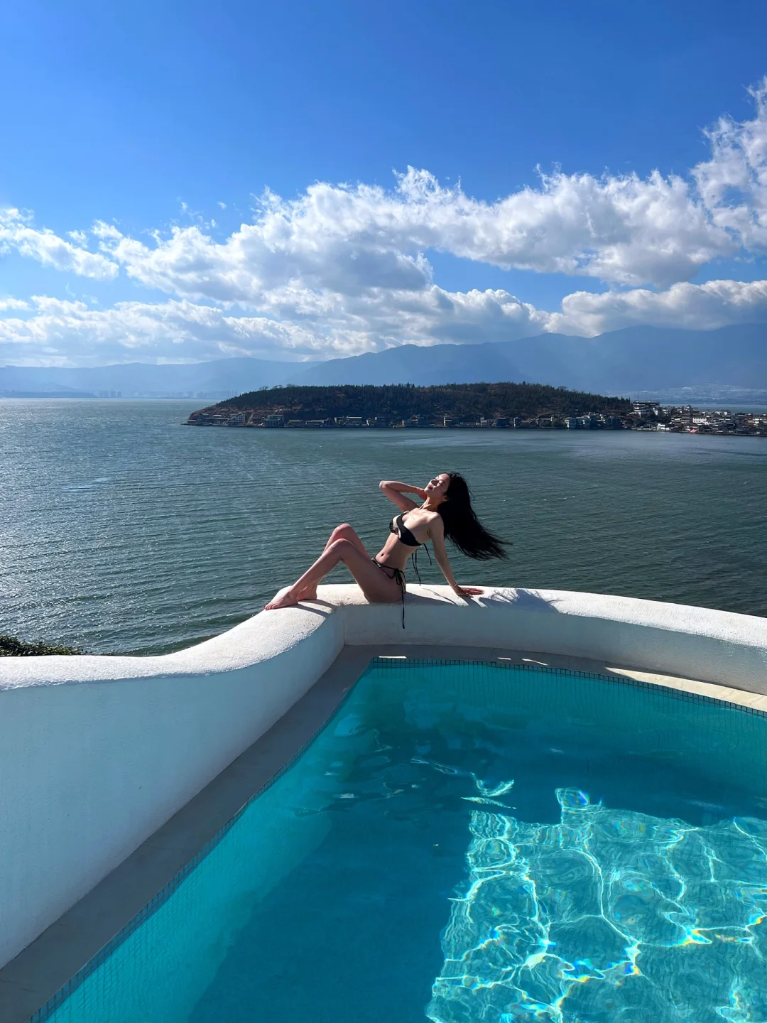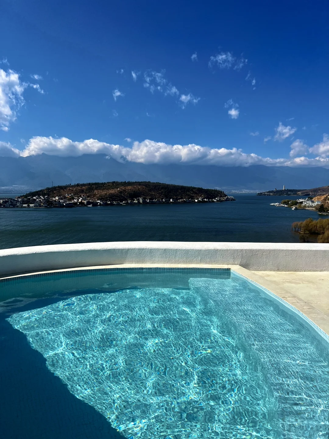纯净的白和湛蓝的天空洱海的完 美搭配