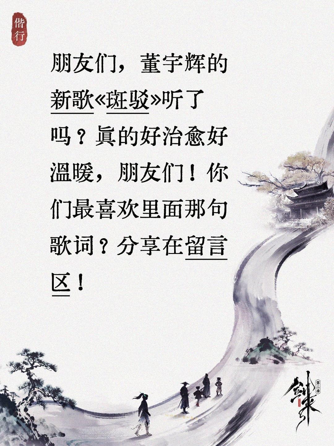 朋友们,董宇辉的新歌听了吗?朋友们,董宇辉的新歌《斑驳》听了吗?真的好治愈好温暖,朋友们!你们最喜欢里面那句歌词?分享在留言区!