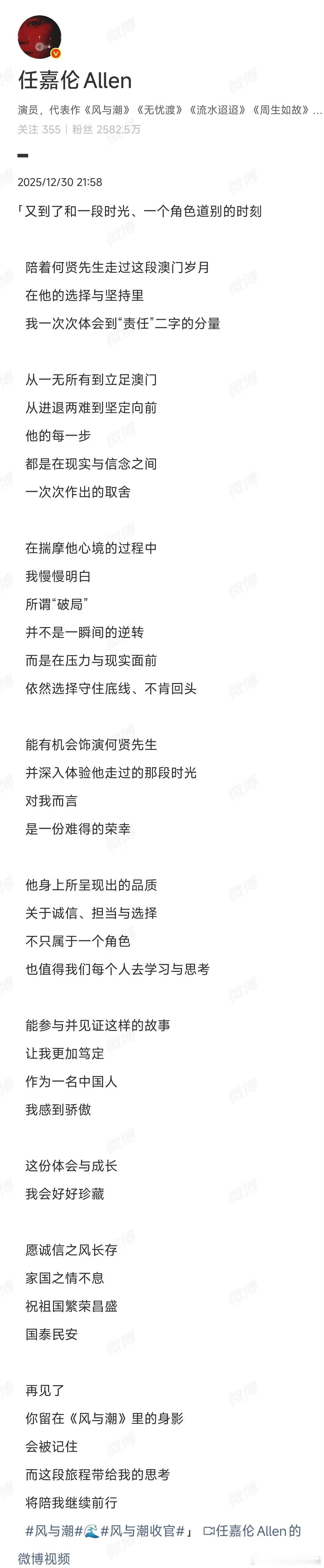 国超哥哥的收官小作文来了,也恭喜《风与潮》央一目前播出3周(21集)cvb均值3.01%抗住了死亡排播!任嘉伦风与潮
