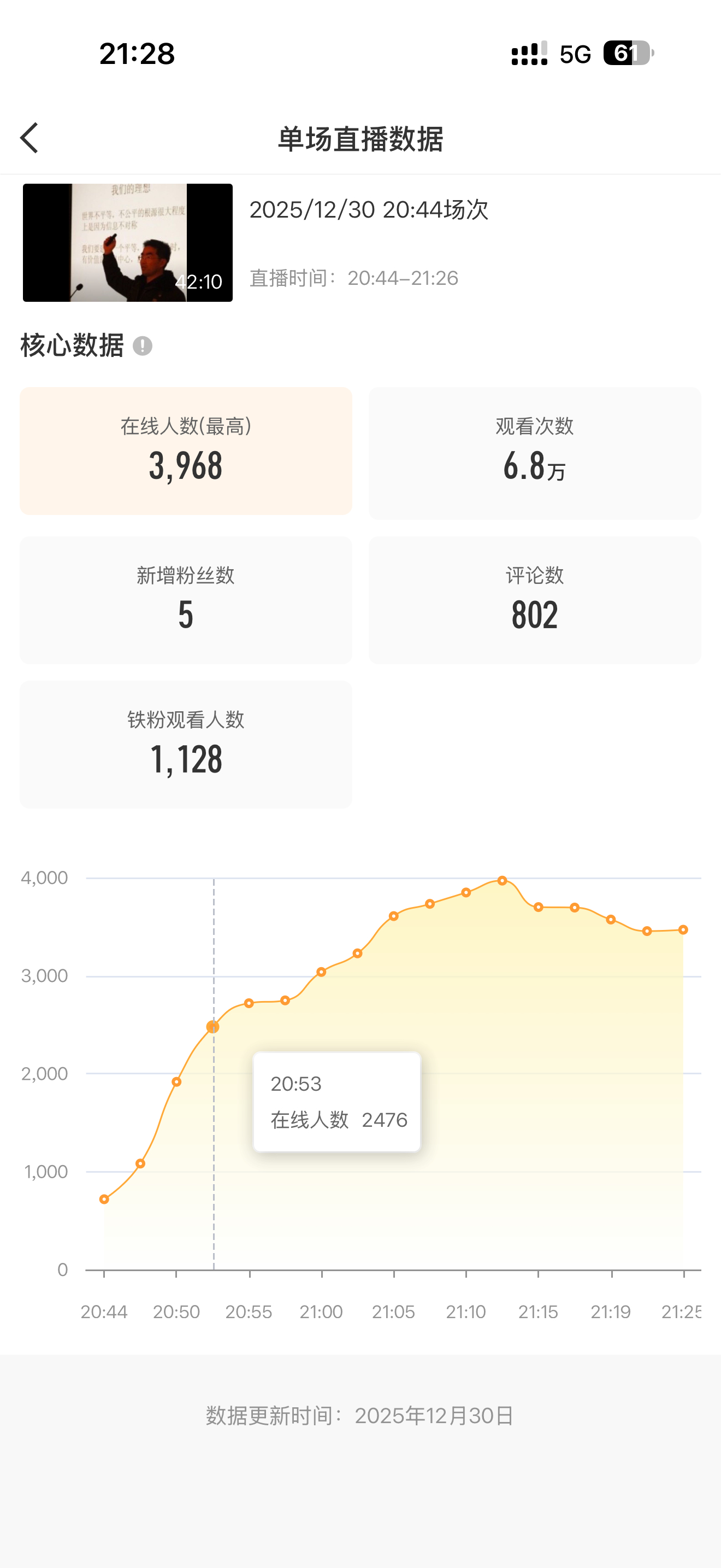 刚刚这个直播成绩还行吗?上面也是再三给我强调要规范言行,好在从头到尾都是正能量,