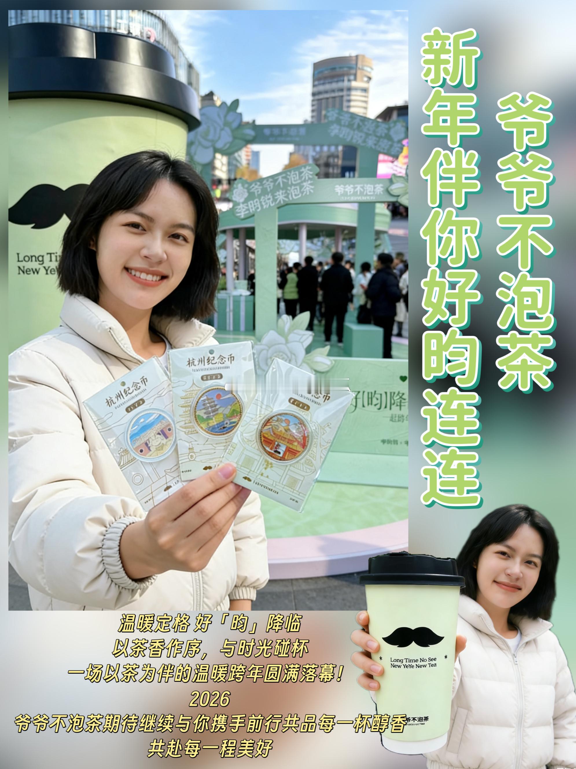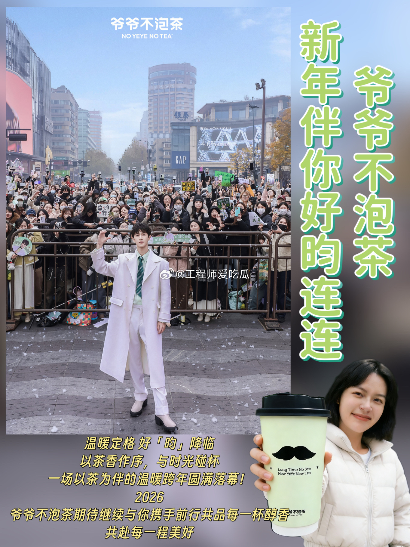 爷爷不泡茶爷爷不泡茶新年伴你好昀连连 😍姐妹们!我真的要激动哭了!!!😭 今天12月30日为了赶上【爷爷不泡茶】在杭州湖滨in77的跨年快闪,我直接“勇敢一把”,翘班冲了过去!🚀💨 这绝对是我做过最不后悔的决定,一场专属于冬天的浪漫飘雪和一杯温暖的奶茶,直接把跨年仪式感拉满了!❄️🍵✨👉现场直击一到in77,我就被现场的氛围震撼了!👀 人真的超级多,到处都是期待“小林”李昀锐出现的粉丝们。🥰 当李昀锐本人登场时,全场欢呼简直要掀翻屋顶!📢💥 他比屏幕上还要清爽帅气🌿✨✅快闪限定套餐1️⃣好「昀」降临套餐,两杯空山栀子直接get李昀锐亚克力牌2️⃣有求「币」应套餐,可以🉐三款杭州限定纪念币,精致又有仪式感✅互动游戏集章抽奖消费后参与盲猜杯子、立瓶子和射箭游戏🏹集齐2枚章可以抽李昀锐小卡和冰箱贴盲盒等周边✅小林打卡墙一定要拍📷美美和小林拍照互动,还有机会get小林NFC语音挂件和小卡✅还有超帅的一日店长一日店长套餐可以🉐 亲签小卡和苹果流沙冰箱贴🎵现场还有炫酷的音乐演出和机器狗表演🥤🥤🥤🥤🥤🥤👉李昀锐同款空山栀子get😍终于喝到李昀锐同款“空山栀子”啦!不愧是三斤花窨一斤茶,栀子花香清雅扑鼻~🌼 入口丝滑甘爽,轻乳茶底温柔不腻,咽下后喉间还有淡淡回甘,像把整个冬天的温柔都捧在手心了!✨ 这杯“小林味道”,清新治愈值拉满,果然是跨年限定好“昀”!👉打卡与周边,满载而归的快乐 🛍️🤳现场布置了超级多的打卡点!📷 有巨大的李昀锐立牌,每一个角落都很好拍。😎 我拿着奶茶和立牌合了影,感觉自己也成了这场跨年浪漫的一部分。💃当然,周边也绝对不能少!💸 我入手了李昀锐的应援小卡和杭州限定纪念币。🎀 作为杭州人,拿到杭州限定纪念币超的超开心,主办方太有心了!🎧💖 这些可爱的周边,连同我今天拍的无数张照片和视频,都是这次跨年最珍贵的纪念。🎁🌟👉我的新年祝福愿好“昀”常伴,温暖前行 🥂🎈站在年末的尾巴上,捧着这杯充满心意的茶,我真心觉得,跨年的意义就在于用心去感受爱、创造仪式感。🌠我亲爱的朋友们,无论你是在人潮汹涌的现场,还是在温暖安静的小家,愿我们都有一杯茶的闲适,一份放下旧事的豁达。🍀 愿即将到来的2026年,像这杯空山栀子一样,初尝是清新的希望,回味是绵长的甘甜。🍯 愿所有努力都不被辜负,所有期待都能“昀”酿成真。🌈 🎆 新的一年,和爷爷不泡茶、和李昀锐一起,继续温暖同行吧!🤝 🗣️❤️我们,新年见!💖🎊 2026,冲鸭!🚀