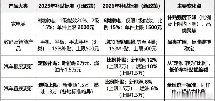 网传26年国补2500亿总额,相较于25年的3000亿,边际上略降,结构上也有下滑,比如汽车补贴力度有明显下降了(去年的标准成为了封顶线,10万左右的车子补贴力度明显下降)。不过更需要注意的是手机、汽车、家电等耐用消费品的需求并不是连续的(25年国补已经释放了大半需求,不会有人年年换耐用消费品的)。