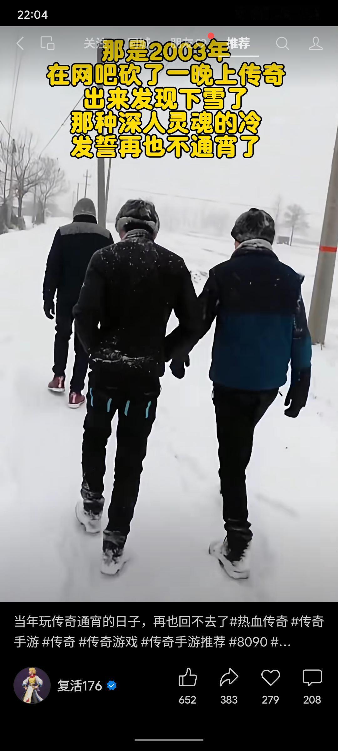 通宵鏖战《传奇》,踏出网吧已是漫天飞雪,寒意刺骨,立誓再不熬夜。如今回首,那热血沸腾的青春与彻夜不归的自由,已随雪花一同消融,唯余怀念。