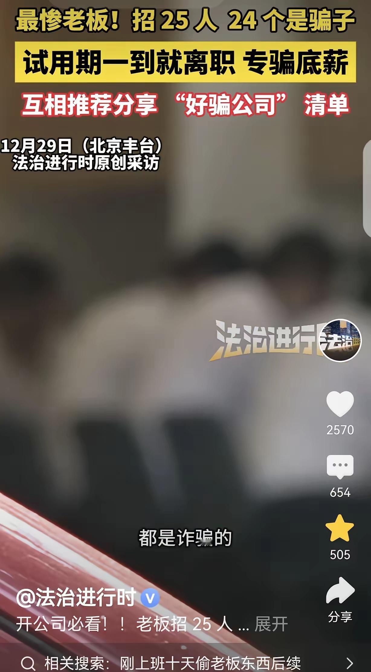 这篇报道主要揭示了职场中的一些职业“演员”和企业管理中的漏洞,反映出诚信缺失和法律监管不严的问题。总结关键点如下: “多公司挂职”骗局:一些“员工”利用管理疏漏,频繁应聘多家公司,利用公司不签合同、不交社保的漏洞,轻松获得底薪后迅速离职,逃避责任和劳动保障。 “骗子联盟”:这些“员工”之间资源共享、互相推荐“好骗公司”,形成一个秘密的“联盟”,共同谋取低成本甚至零成本的工资,形成某种职业“挂职”行为。 公司管理漏洞:一些公司为了追求低成本,用人不签合同、不缴社保,管理松散,给这种“职业员工”提供了可乘之机。这种管理缺陷也将公司推向法律风险。 法律法规层面: 《民法典》第7条强调诚信原则,企业应恪守承诺,遵循诚信。 《劳动合同法》第10条规定,试用期也需签订书面合同、缴纳社保,否则属于违法行为。 如果存在欺诈行为,骗取底薪金额超出一定额度,可能构成诈骗罪(刑法第266条)。 事件的反思: 企业应完善管理制度,依法签订正式劳动合同,依法缴纳社保,规范用工行为。 员工应保护自身权益,不要被“底薪免费领取”的诱惑,避免成为“职业底薪党”的受害者。 法律应加强监管,对于利用制度漏洞进行的欺诈行为,依法追究刑事责任。 总结建议: 企业:应建立完善的人事管理制度,严格签订合同和缴纳社保,避免成为“职业员工”的猎物。 个人:要提高法律意识,警惕低成本陷阱,坚决维护自身合法权益。 法律:应强化对用工违法行为的惩处力度,推动建立更完善的诚信档案等制度。 如果需要更详细的法律解读或应对措施,欢迎继续咨询!演员骗局 演员行业风险