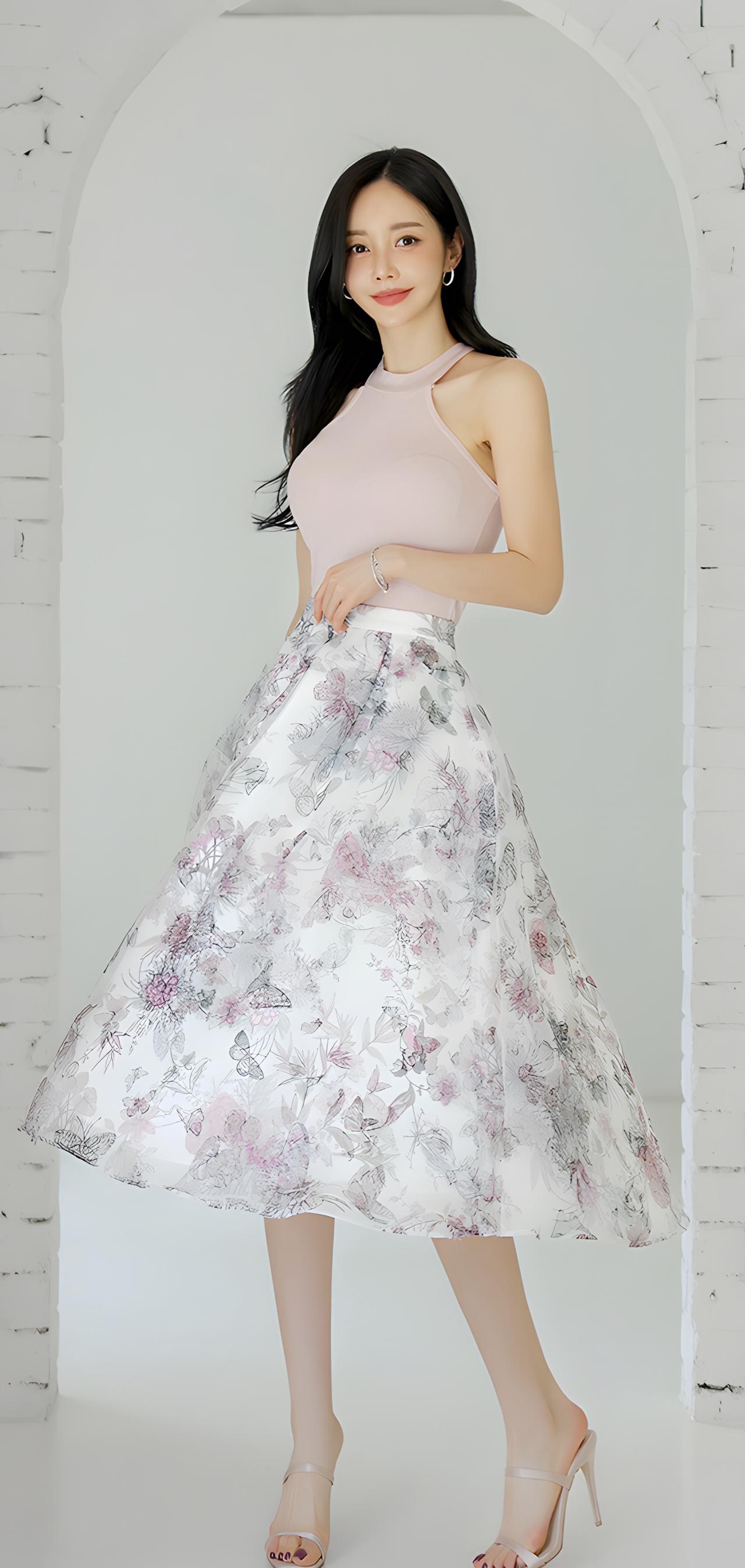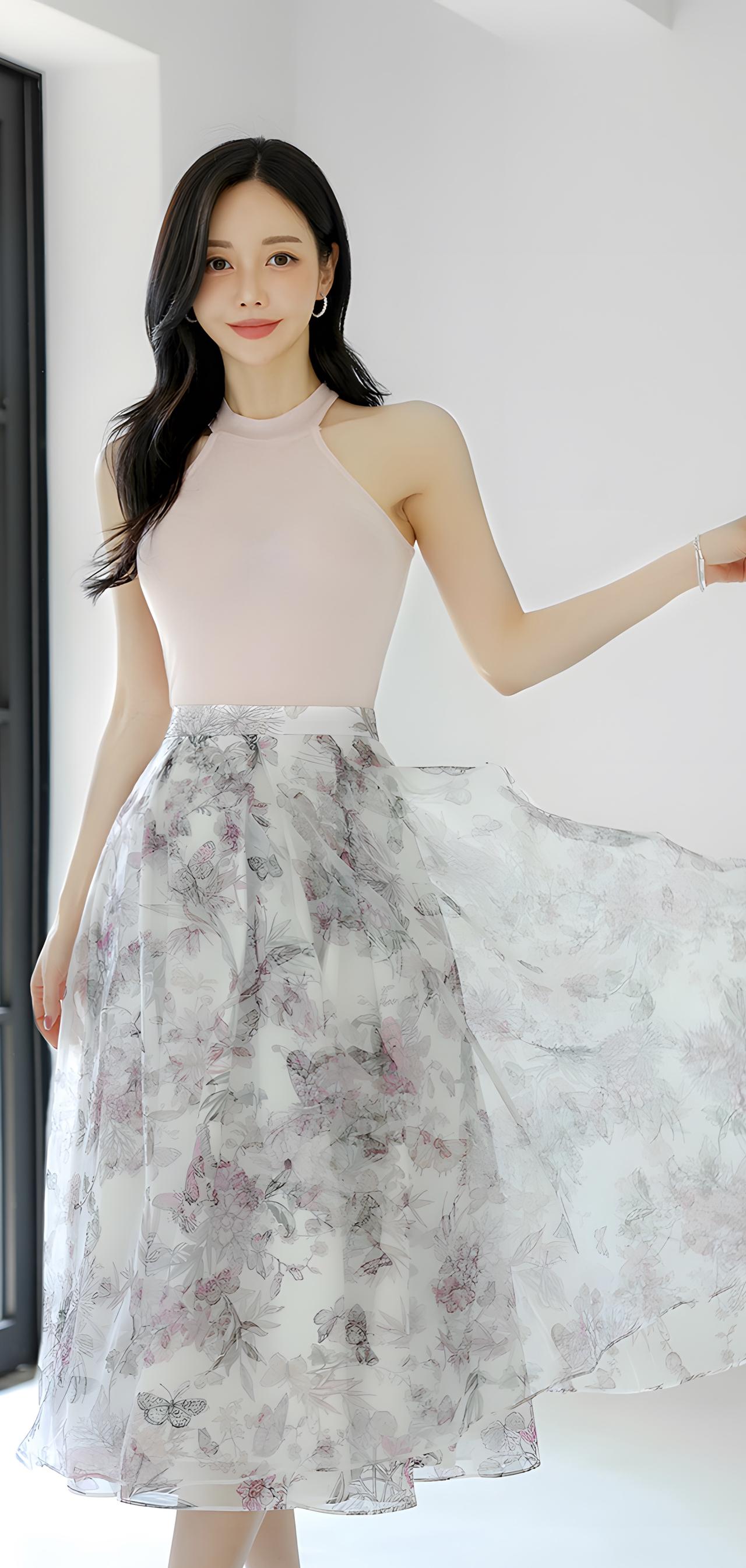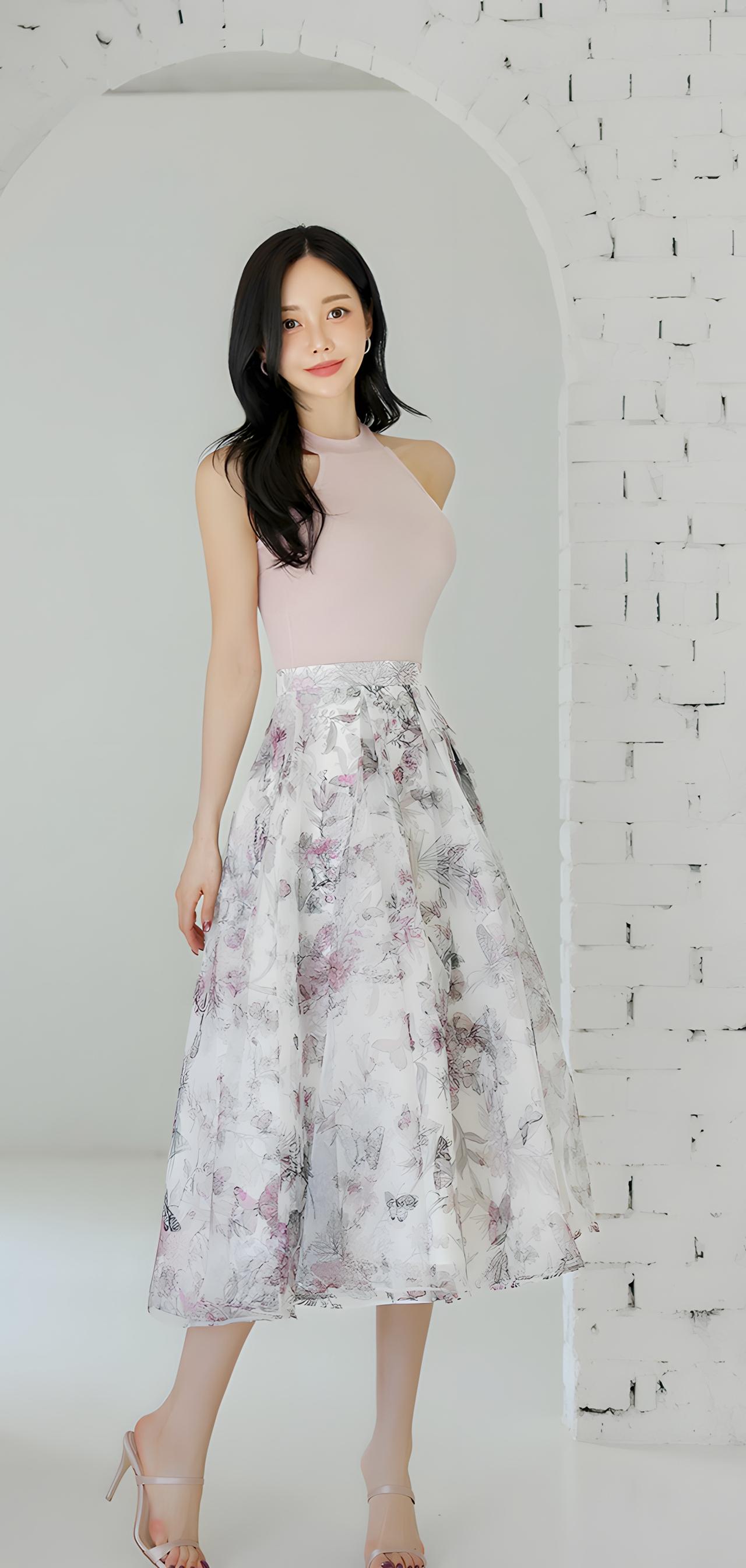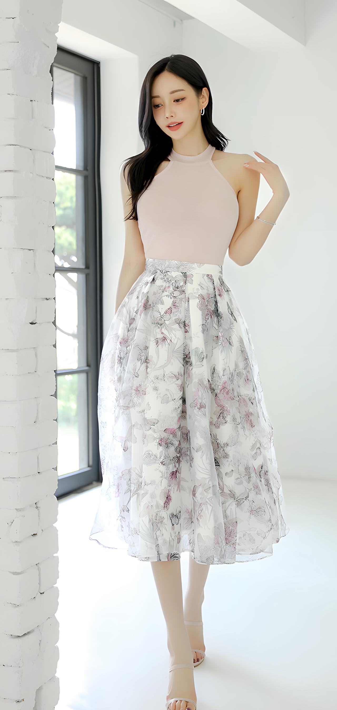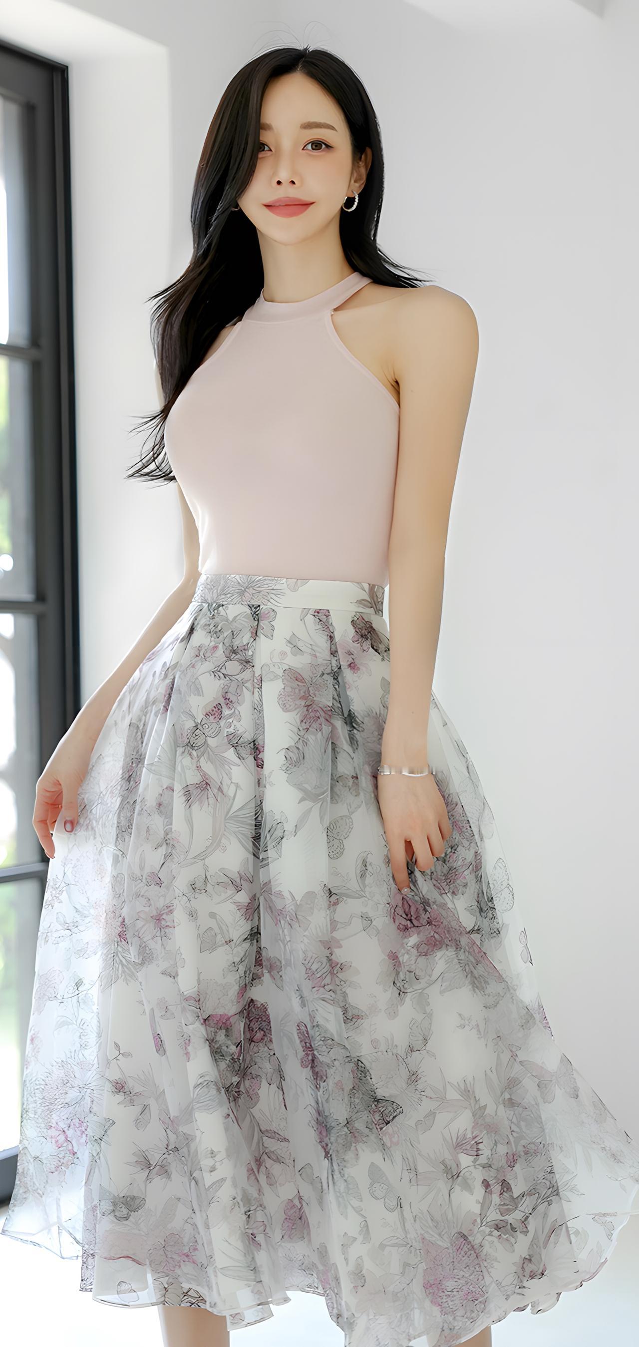 甜美粉色上衣搭配花卉半身裙,清新又优雅!🌸👗