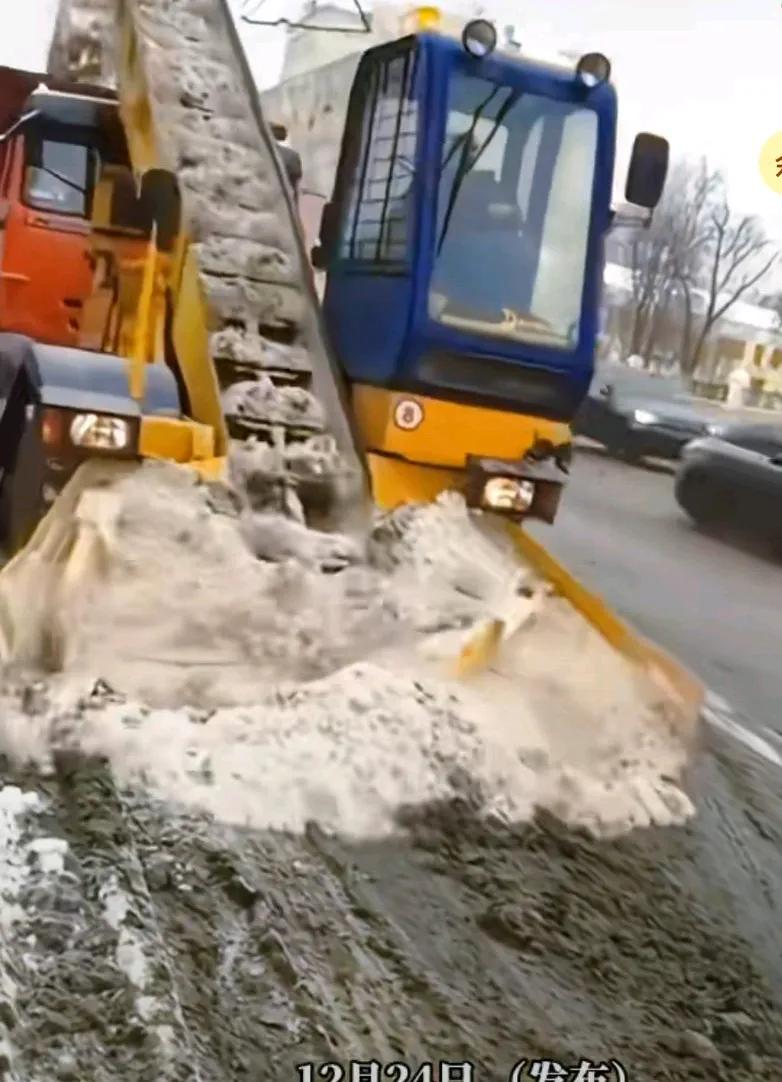 清雪车扫雪现场,一下把路边的残雪都清理干净了, 他的两只手臂来回摆动, 跟机器人似的, 真的很好玩, 清扫速度还很快, 并且比人工打扫的还快, 清理的还很干净。 高科技就是牛。 有网友说,千万不要让孩子看见, 不然又拉不回家了, 可能还要爸爸妈妈给他买一个这样的玩具。