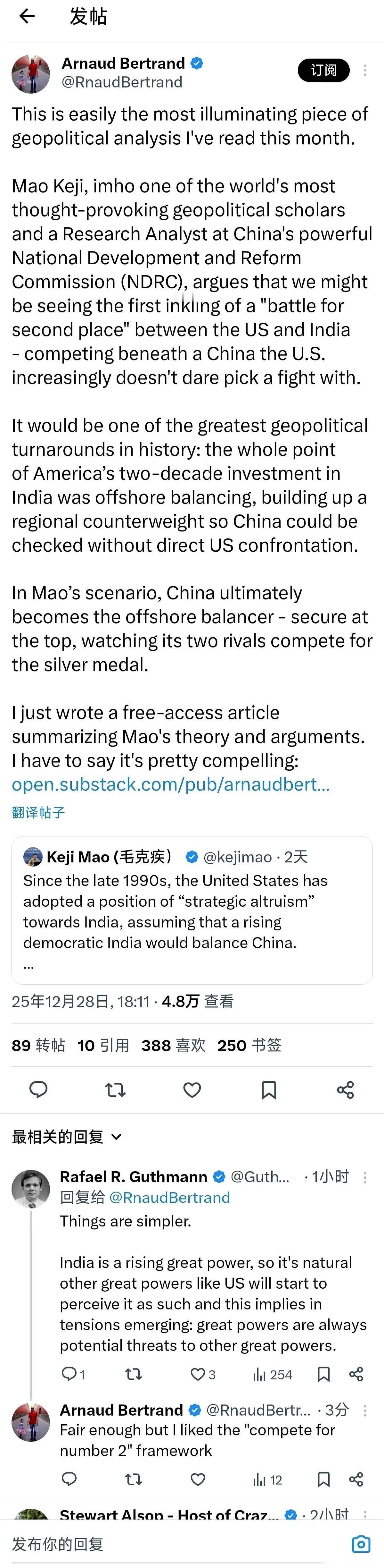 看到学者毛克疾的观点,属实被美国这波操作逗笑了。忙活二十年扶印度,想让它制衡中国,结果反倒给自己养出个竞争对手,连“世界第二”的位置都要被印度惦记上了。 美国当初又是给钱又是给技术,打着“战略利他主义”的算盘,觉得印度会乖乖当代理人。 可印度哪是甘愿当小弟的主,如今底气足了,早就想跟老大哥掰掰手腕。最有意思的是,咱们全程没动手,就看着美印为了“银牌”争起来,这剧情满是黑色幽默。只能说,美国的战略误判,终究是搬起石头砸了自己的脚。