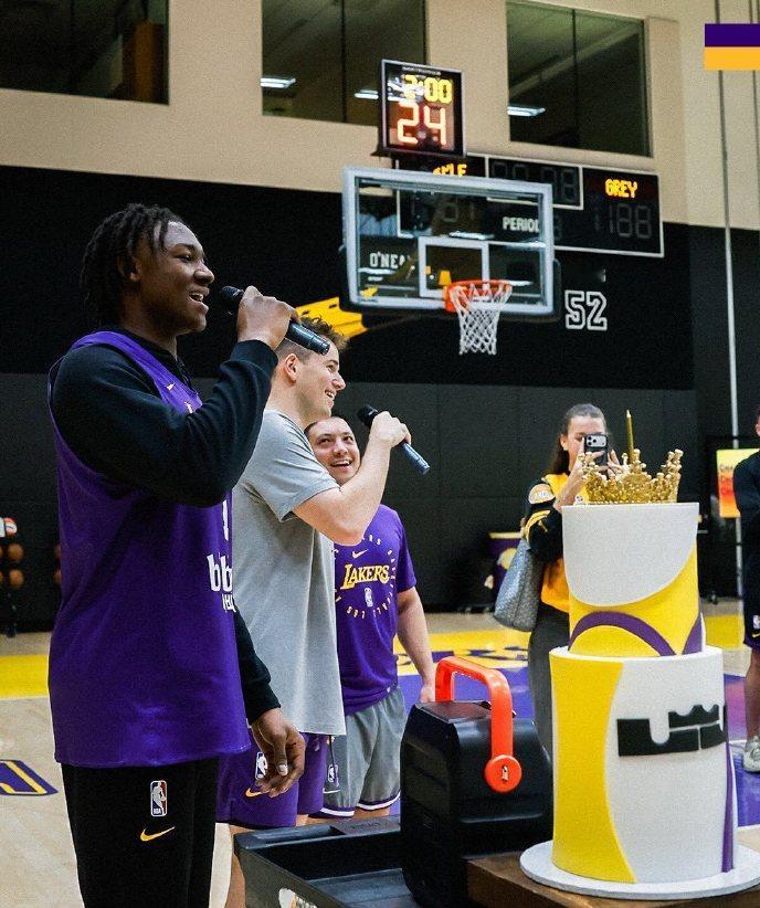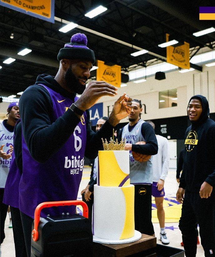 NBA:联盟现役最老的球员41岁了—最长的河最高的山 今天是4届总冠军+4届总决赛MVP+4届MVP+NBA历史得分王+3届全明星MVP+21届全明星+21次最佳阵容+13次最佳阵容一阵+5次最佳防守阵容一阵+最佳新秀+最佳新秀阵容一阵+一届得分王(2007-08赛季)+一届助攻王(2019-20赛季)+NBA历史75大球星+NBA杯冠军(2023-24赛季)+NBA杯MVP(2023-24赛季)勒布朗-詹姆斯41岁生日。 今天晨练结束,湖人全队还特地开了个小派对庆祝老汉生日。