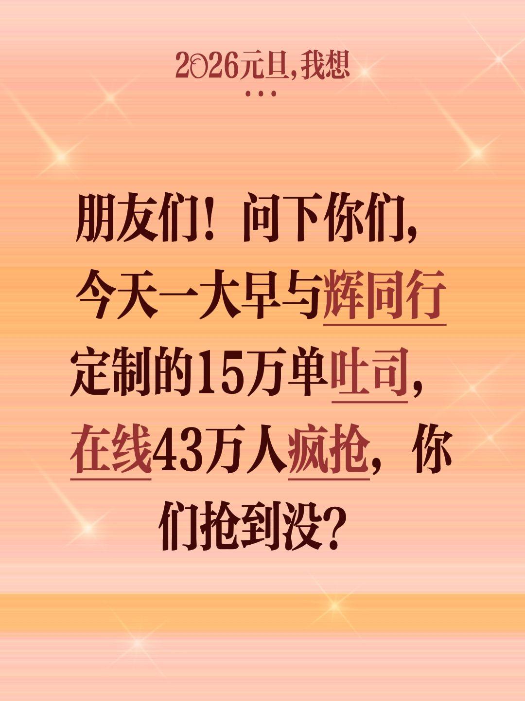 你们抢到了吗?朋友们!问下你们,今天一大早与辉同行定制的15万单吐司,在线43万