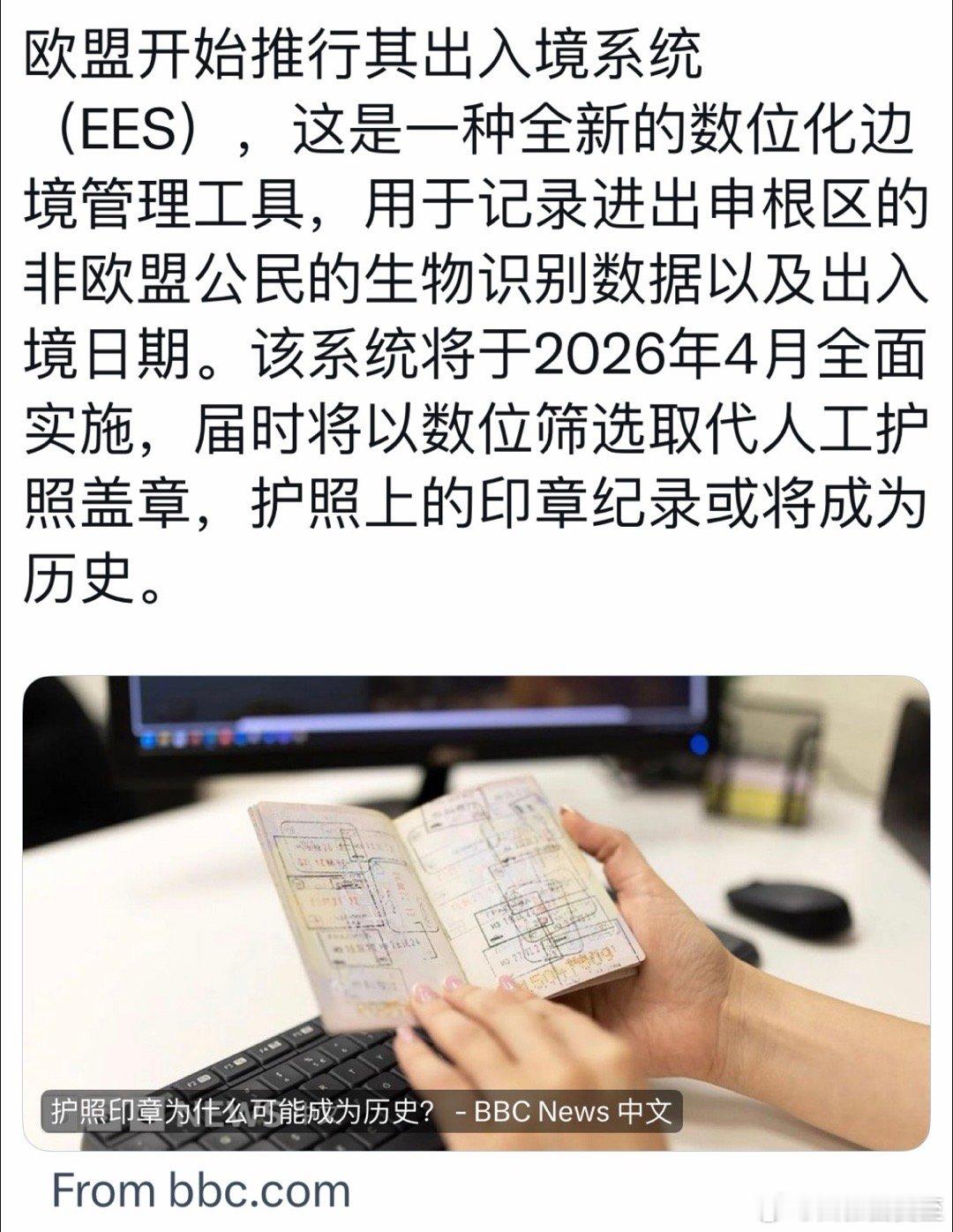 明年四月,欧盟对非EU公民出入境,开始实施新的管理模式: