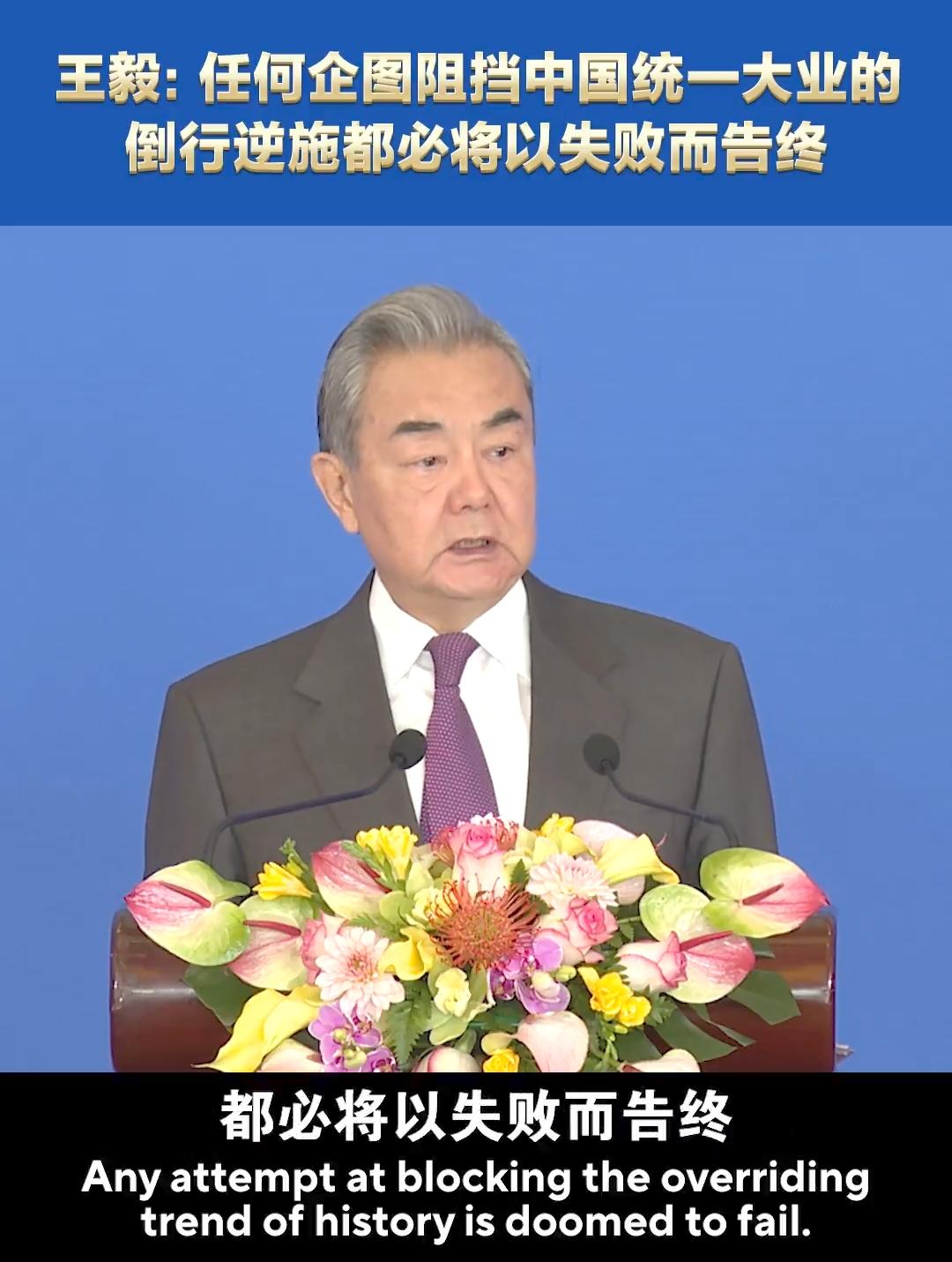 新闻快讯——王毅外长:任何阻挠中国统一大势的企图,都注定以失败告终!