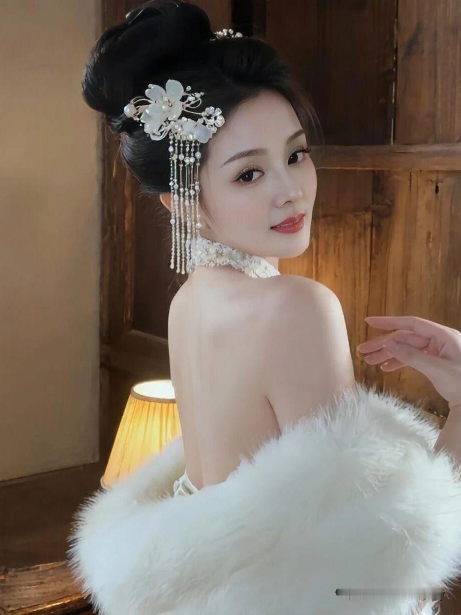 香肩美背俏脸蛋,雪里透红气质赞。高雅气质美女