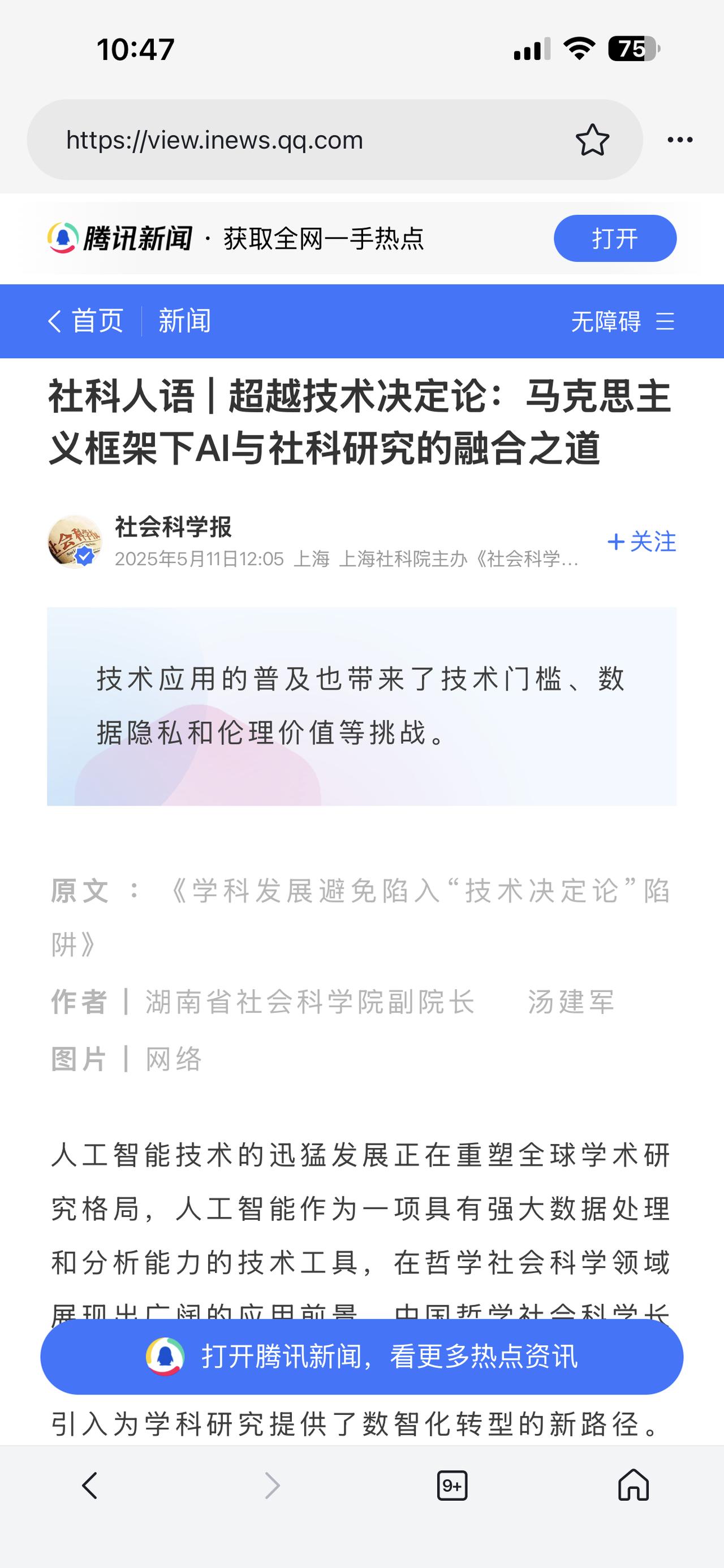 中国特色的AI,将来会引领世界科技潮流吗? 为什么会写这篇小作文?因为前几天和一位高校老师聊天的时候,他说现在有很多教政治的老师在研究AI,他们研究如何把AI技术和政治知识结合,从而走出一条“具有中国特色的AI之路”。他还说,不久的将来,一定会出现很多和这方面有关的论文……这是我第二次听见类似的话语,所以想谈谈自己的想法。 我初听有点懵。以我对AI浅薄的认知,认为AI的发展终极目标是机器人学会像人一样思考、分析问题,最终辅助人类走向更高级的文明。 但是,细想那位老师的话,也觉得没有毛病。 1、因为,中国当下最大的特色就是坚持共产党的领导、坚持发展社会主义道路。利用先进的AI科技来实现和巩固这个目标,理论上没有任何问题的!目前已经有全国各地社科院、马院的学者们在研究。在这方面的研究,毫无疑问咱们肯定处于世界领先水平!(图1、2)参考~2025-5-11社会科学报《超越技术决定论:马克思主义框架下AI与社科研究的融合之道》 2、中国第二个特点就是世界工厂,所有工业门类齐全。AI的产业应用市场巨大,所以AI如何在实际生产中落地就显得非常重要。并且,我们的企业一向信奉的是“拿来主义”,重实用方面、轻基础方面的研究。今后在AI的应用领域,中国有较大可能走在世界前列。 至于说在AI的研发领域,想引领世界AI的发展潮流,目前还有差距,可以作为一个奋斗目标!