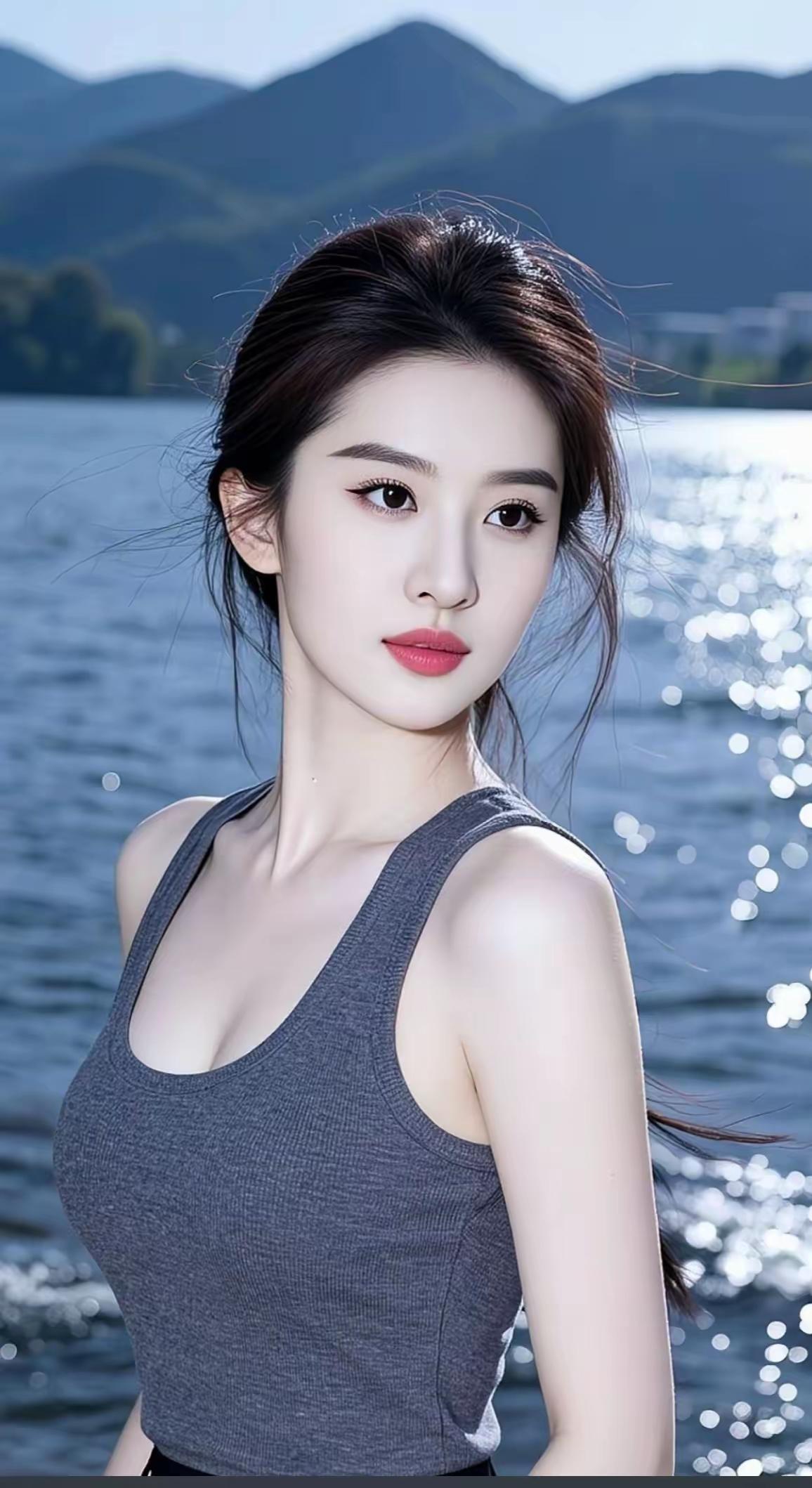 夏日湖畔少女,清新自然,阳光下的美丽瞬间