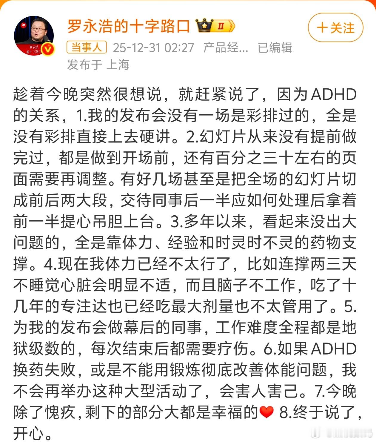 罗永浩自曝ADHD罗老师深夜爆料,他竟然也是被ADHD困扰的一批人,发布会所有要展示的东西全靠临时发挥,这个真的很令人佩服!