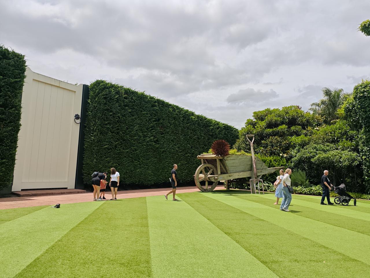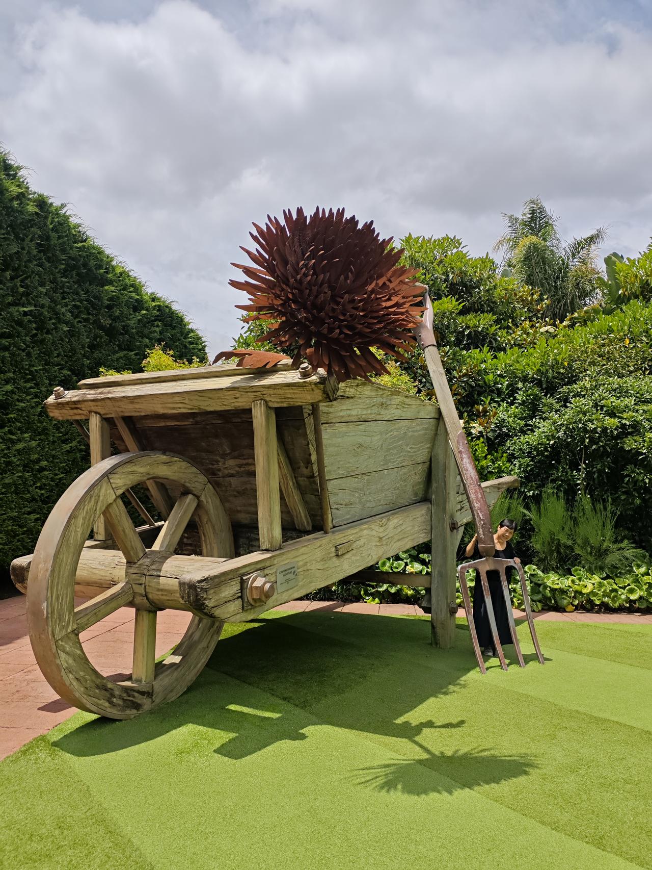 我们成了“小人国”里的小精灵 新西兰有个霍比特人村,作为著名景点接待世界各国游客。霍比特人是英国作家笔下刻画的人物,是一个“小人国”的族群,因为这里是《指环王》和《霍比特人》电影的拍摄地而走红,前一段时间专门到这里旅游体验了一把,很不错的…… 现在说的“小人国”,是在汉密尔顿的“世界之窗”里…… 这里与霍比特人村的情况是相反的。在霍比特人村,看到的都是缩小了人类社会,他们居住的窑洞和生活设施,都是缩小版的再现,走在其中我们就像天外来客…… 而汉密尔顿“世界之窗”的这个地方,有一处院落,木门、工具、独轮车,都是放大版的,放大了好几倍…… 我这个一米八的个头,举起双手才能够到独轮车的手把,老婆一米六也才比那把铁叉的叉头高了一头,看看这一帮外国人,走在白色木门下,就像一个个小人国的小精灵…… 当时没有注意这是一个什么地方,也没有看到相关说明,回来翻看照片,哈哈,我们都成了“小人国”的小精灵……