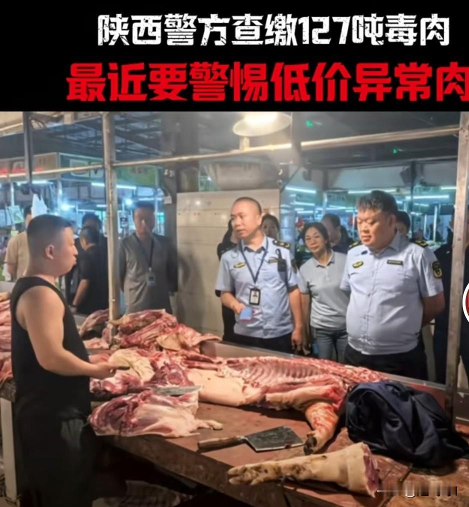 一定要注意, 年终岁末年轻人都回家准备过年了,买猪肉一定要到大一点的超市购买,到信誉好的地方买肉,不要买低价肉,吃的东西一定要对的起自己,多花点钱都无所谓。 今年陕西警方查缴了127吨劣质猪肉,这些肉都喜欢在农村或者偏远一点的地方,在学校周围,还有离农贸市场远的地方卖,没有检查的,有的肉摊位就为了躲避检查跑远地方卖, 陕西在全国开了好头,未来三年打击劣质食品,毒猪肉,毒牛肉,陕西发现养猪户用劣质饲料喂猪,还有喂瘦肉精的,把猪养的都是瘦肉,这样的猪肉都不能吃了。 陕西警方重拳出击,把这些从养到屠宰一条龙的检查,发现一起抓一起,就是保证老百姓的餐桌上的安全,陕西警方从年初到现在共抓240多人,缴获劣质肉127吨,涉案金额巨大。 所以我们买猪肉或者买吃的,一定要到超市里买,不要贪图便宜,要买质量好的,餐桌安全无小事。