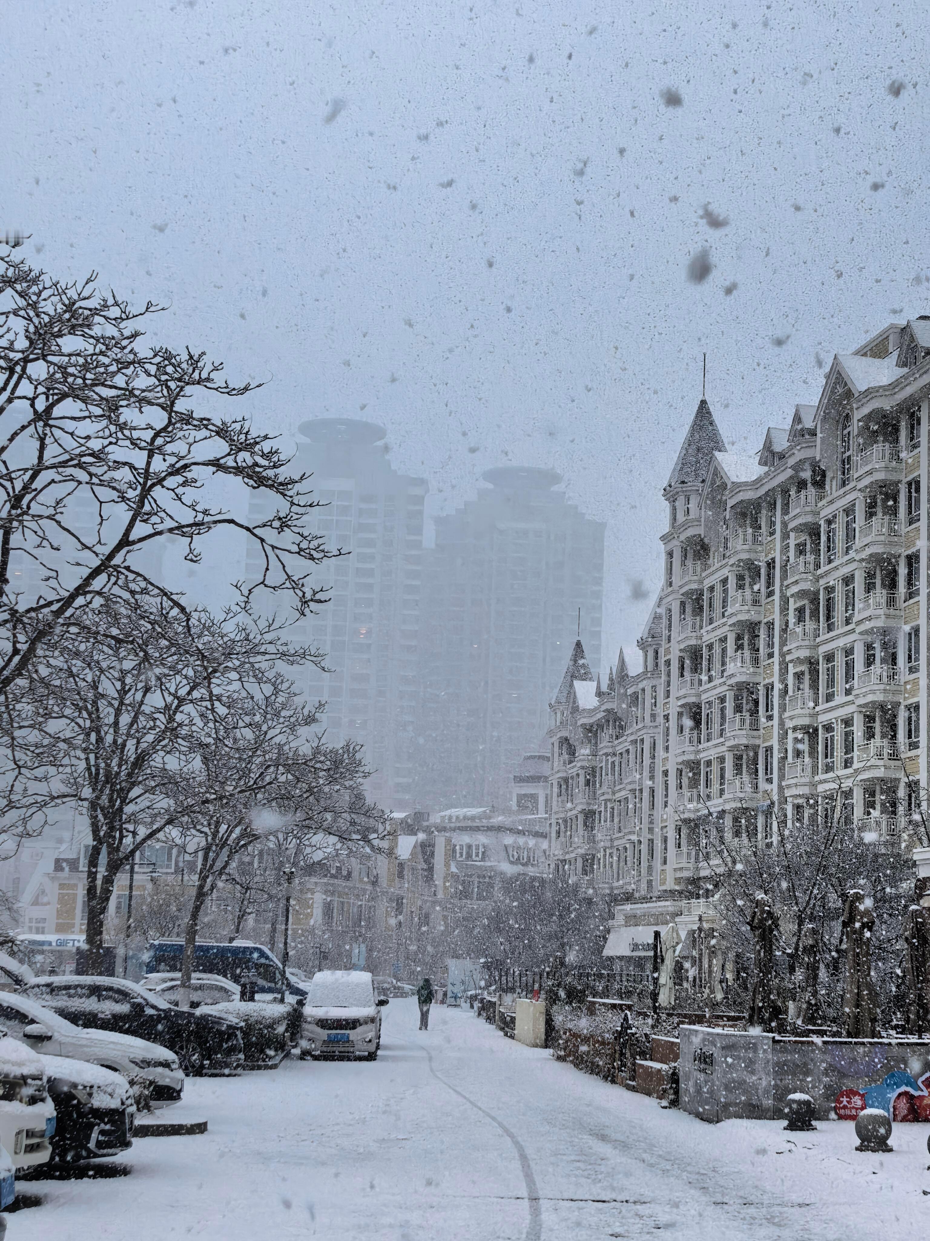 鹅毛大雪在大连具象化了感受下鹅毛大雪不到一个小时,地上已经积雪了!景美,但路况很不好!出门一定一定要注意安全!