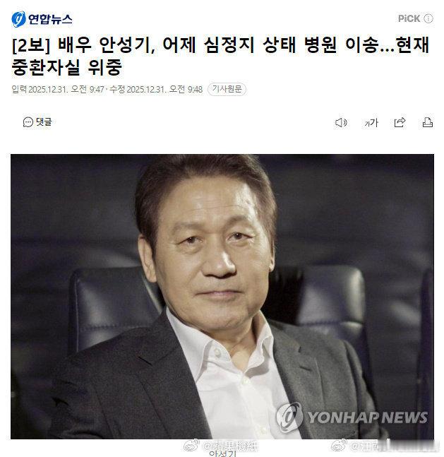 韩73岁影帝安圣基病危泰斗级人物,希望你一定战胜病魔早日康复啊!