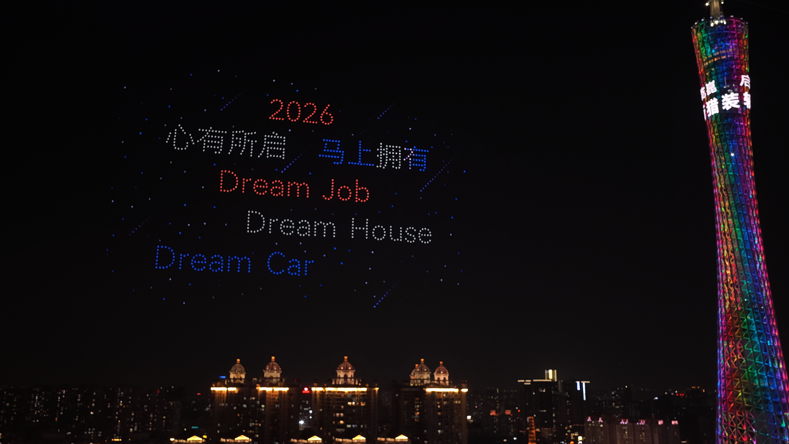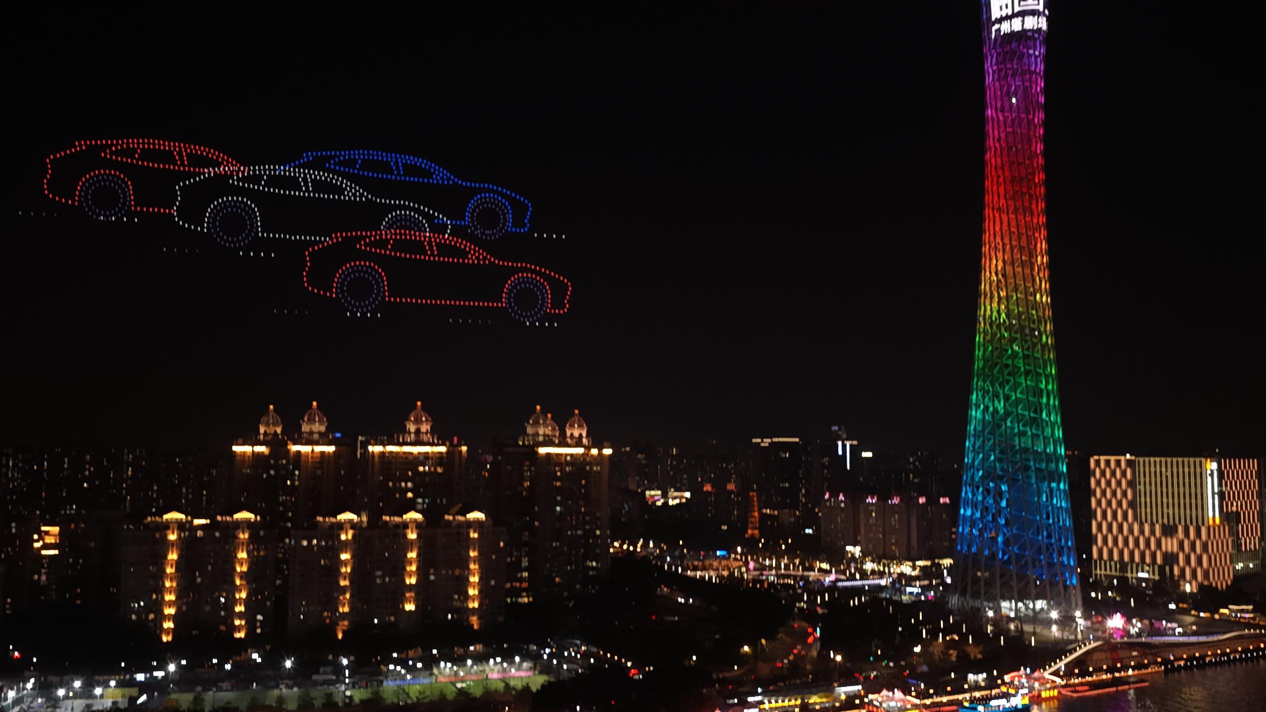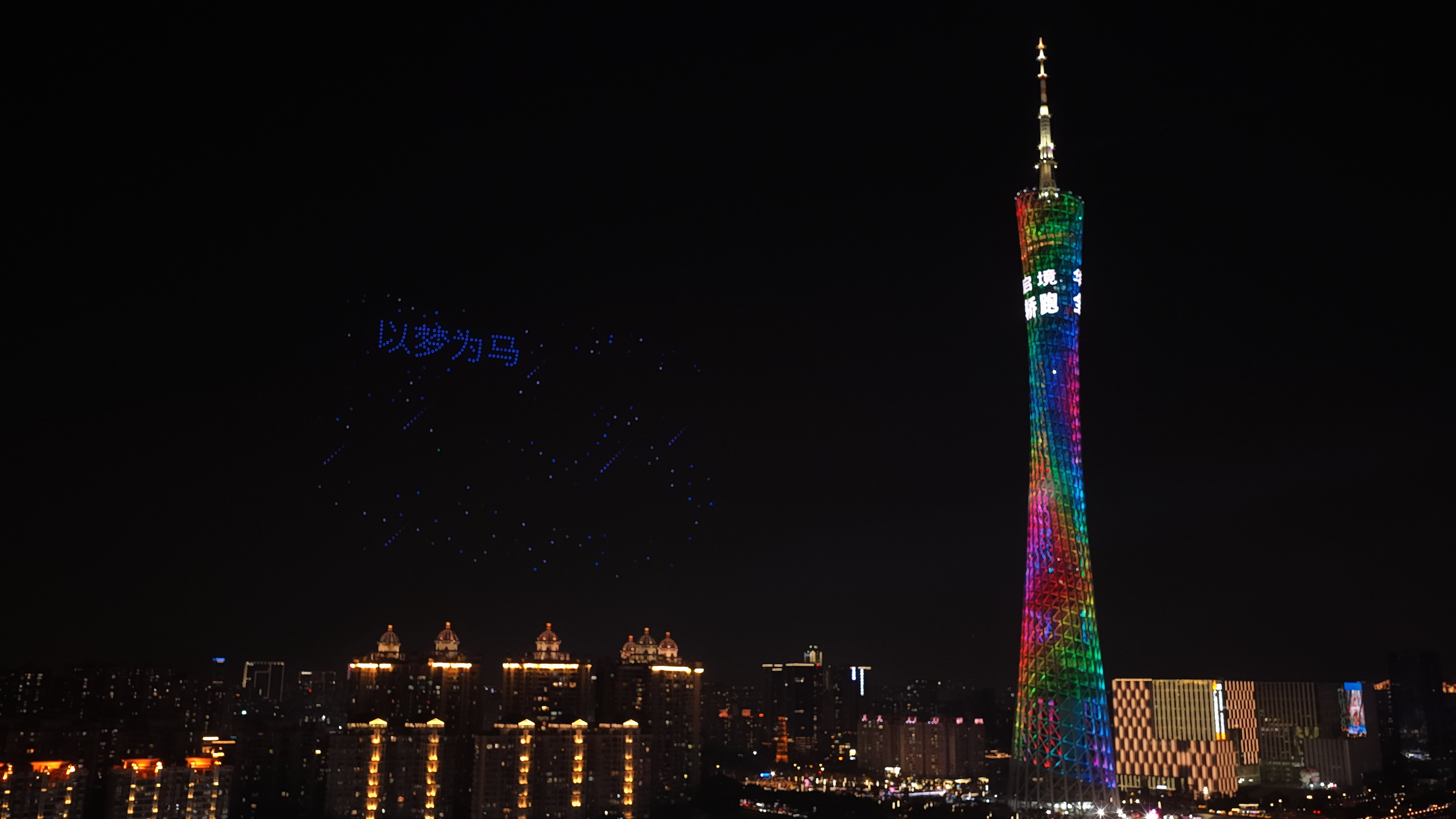 广州塔夜空闪现启境新车造型广州的跨年仪式感藏在这场表演里无人机点亮羊城夜空,这里的年味有更多科技味。解锁一条条祝福语,那就随着奔跑的骏马在新年“美得出色·驾得热爱·智得自在”。