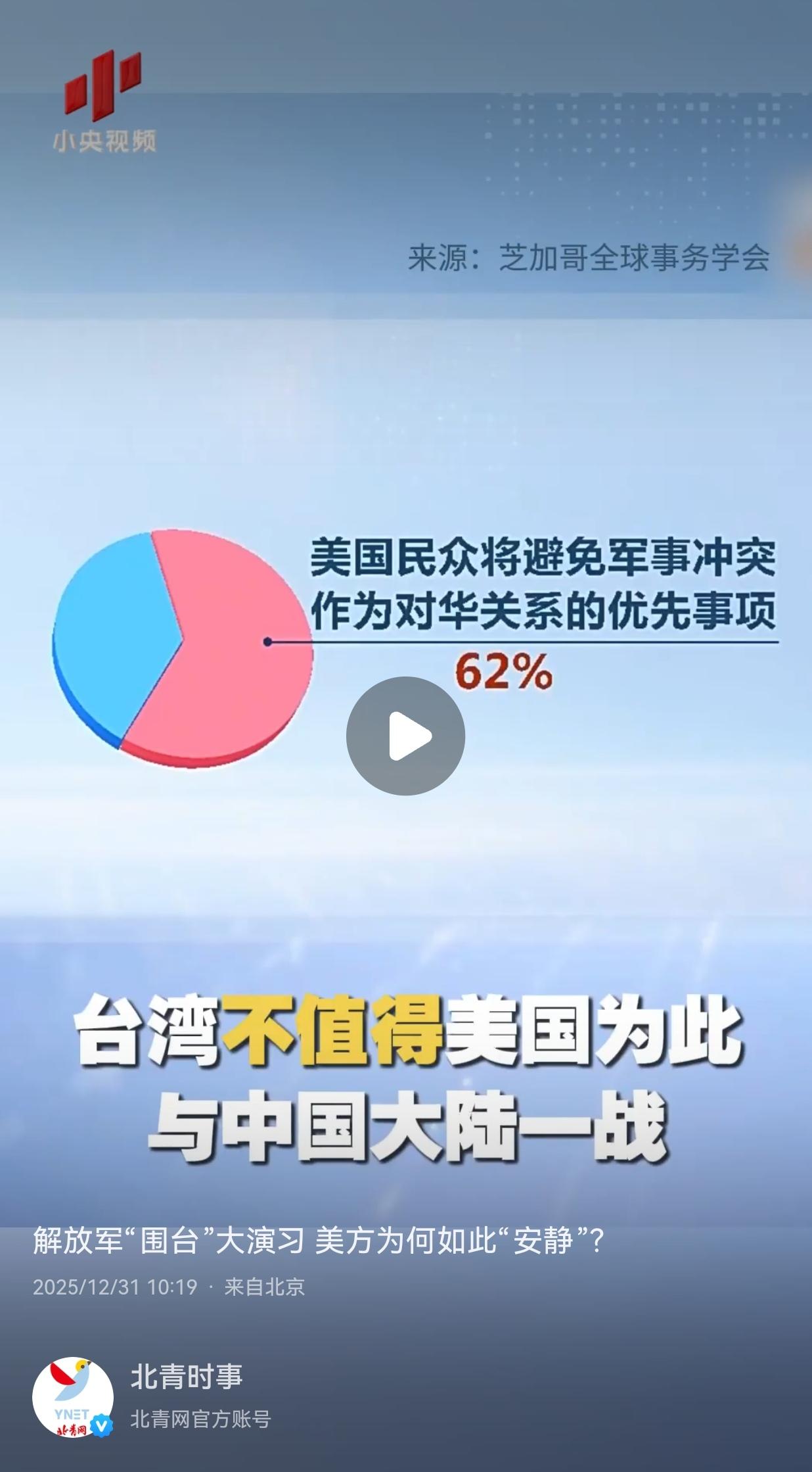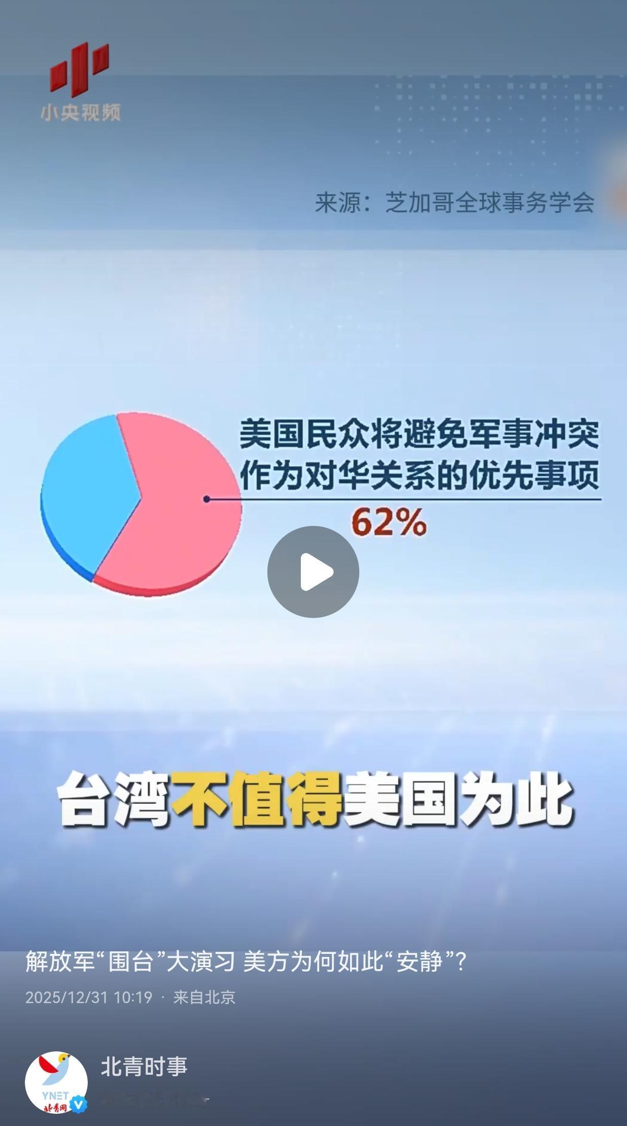 -drcn.cloud.huawei.com.cn/landingpage/media?docid=10510412976343965732675&to_app=hwbrowser&dy_scenario=push&tn=5864197931d2367d9dfc77ec47ffb74e6322bd12f85646185ae2225f2e61ccb4&ctype=video_live&cpid=666&r=CN&pageType=2&share_to=weixin/verticalVideo 事实上,美国民众也是反对美国当局武力干涉台海局势的,有美国专家就表示“台湾不值得美国为此与中国大陆一战”。而台独分子的“倚美谋独”更是一种非常明显的“反常识和反智”的行为,特别是在台海地区,我国的海空力量已经形成对美国的压倒性优势。