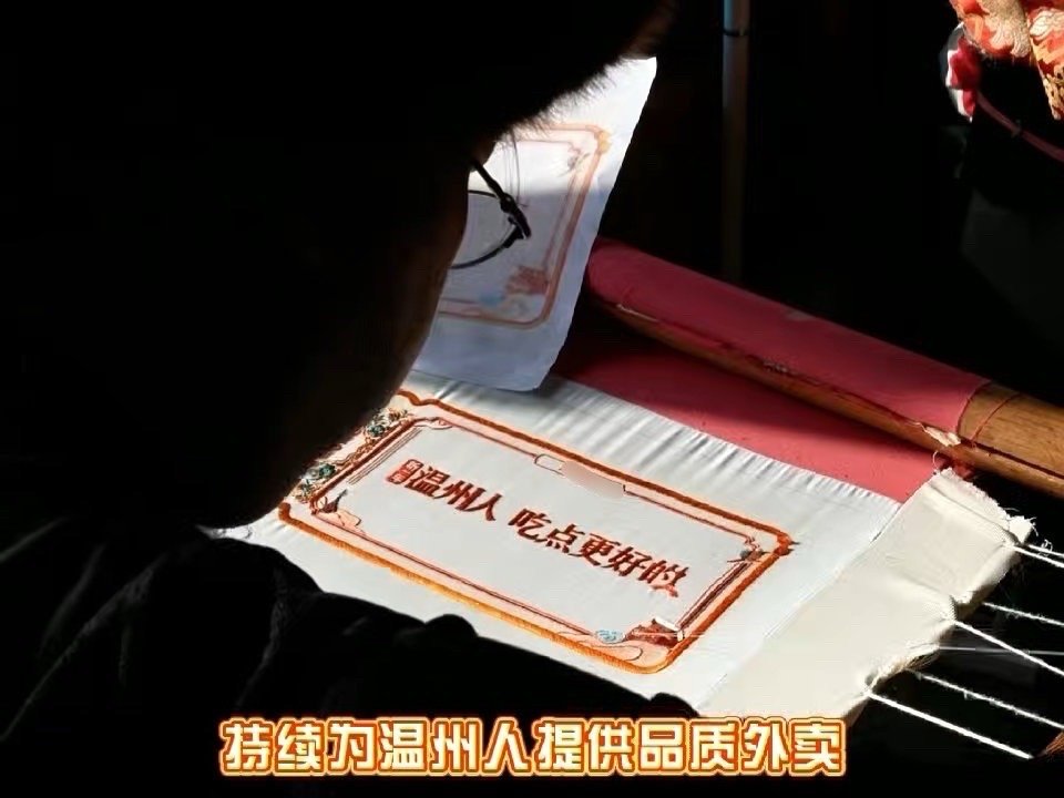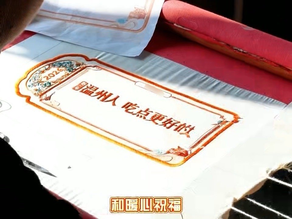 瓯绣年签是送给温州人的新年约定新一年温州人吃点更好的 温州把非遗浪漫玩出了新花样!点外卖能收获瓯绣纹样新年签,街头地标全换上国风海报,美食商家也挂起了非遗挂旗。新一年的约定超暖心,既要吃得更好,也要把温州的文化韵味,融进朝朝暮暮的日常里!