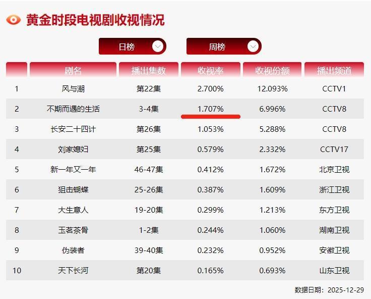 赵丽颖《小城大事》下证了 刚看了一眼央八的收视情况,董璇的《不期而遇的生活》收视