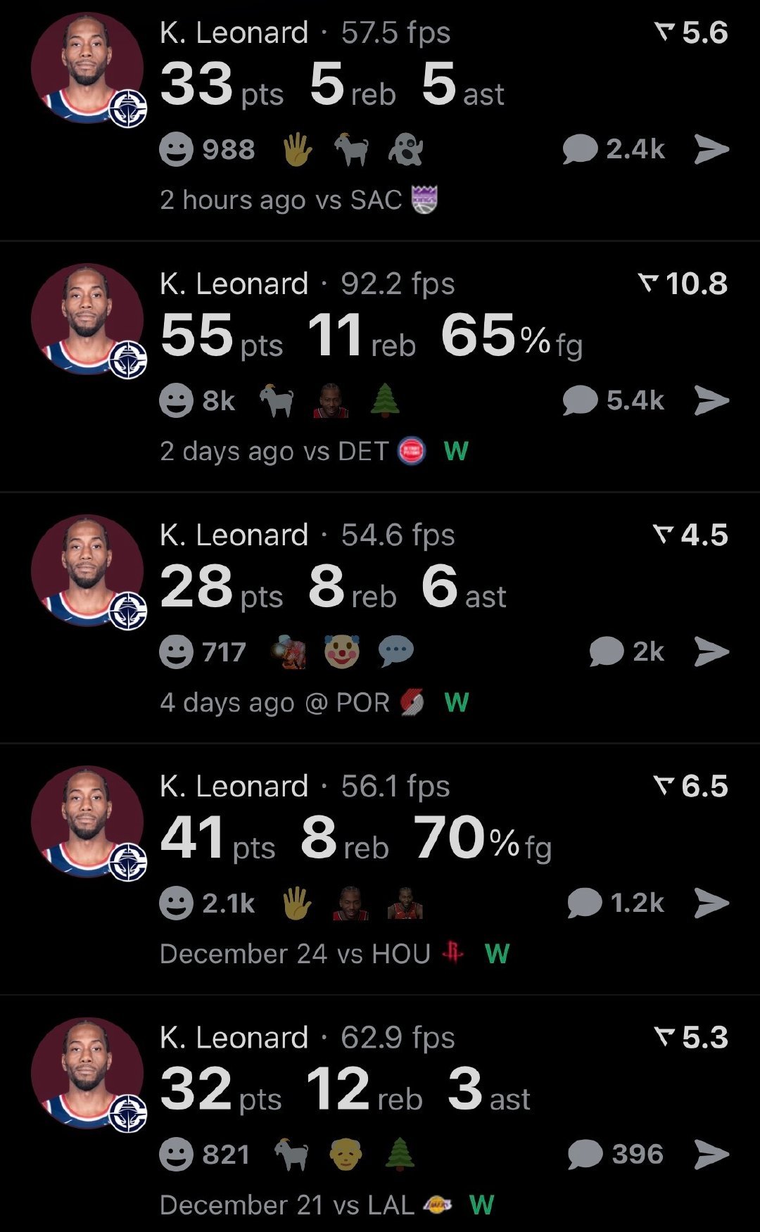 五连胜中,小卡场均37.8分7.3篮板4.2助攻2.8抢断1.4盖帽。国王vs快船