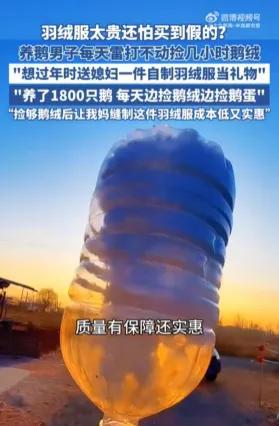 最近看到一个男子回应捡鹅绒给妻子做羽绒服的事儿,挺暖心的。男子说他在路边看到有鹅毛,就想着收集起来给妻子做件羽绒服。他花了好几个月时间,一点点积攒鹅绒。为了让鹅绒更干净,他还细心地筛选、清洗。他觉得外面卖的羽绒服贵,自己动手做既省钱又有心意。他妻子知道后特别感动,穿上那充满爱意的羽绒服,心里肯定暖乎乎的。这事儿让我觉得,生活中的浪漫不一定是昂贵礼物,用心付出才是最动人的。