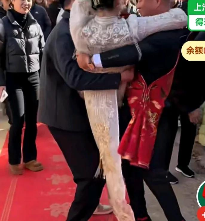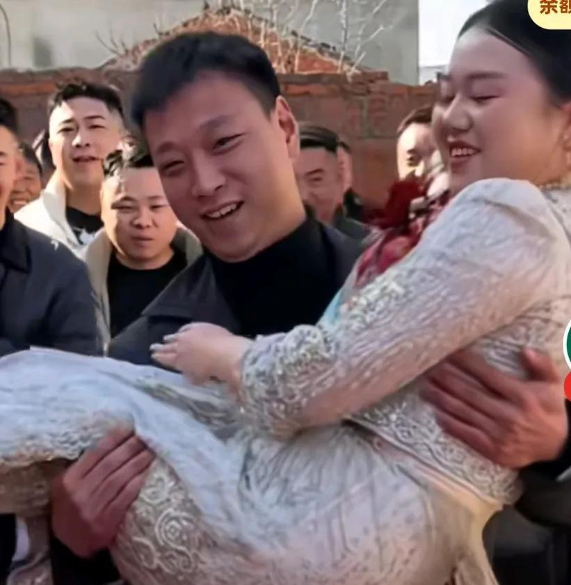 新人结婚新郎快抱不动新娘了,老表来帮新郎把新娘抱到家门口, 然后又还给新郎自己抱。 新娘也没勾着老表脖子自己男人抱着就得勾脖子。 网友说,这老表懂分寸。 这新娘也该减肥一下, 有点肉感的。有人说,咋还要别人帮忙抱媳妇[捂脸]
