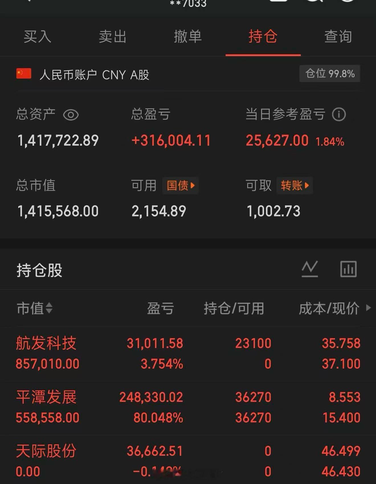 100个本金,目标一年做到翻倍,(启动第7天) 拒绝马后炮;今买入: 航发科技今日卖出:天际股份继续持有平谭发展中……早盘卖出天际股份,尾盘入手航发科技航,期待节后表现,看到的朋友来一波“168”支持一下,接下来每天都会记录,动没动都会实时更新,有你们的支持我才有更大的动力去挖掘更多牛股每日的实盘操作,我将亲自记录并分享。我坚信,只要坚持不懈,收益自会稳步增长。 特别声明:这只是我个人的操作记录,不作为任何投资建议,更不是劝你们跟买! 股市有风险,投资需谨慎!
