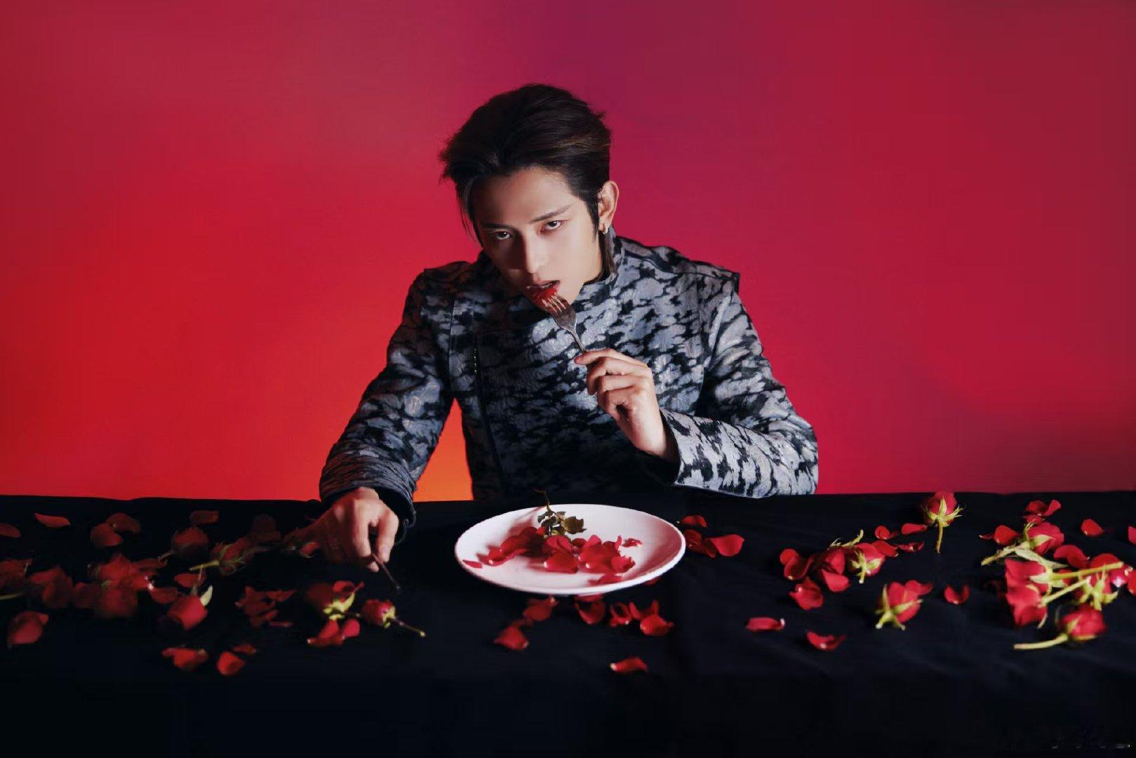 谁教符龙飞这样拍氛围感的 央视跨年的符龙飞把野奢贵气玩到极致!暗红幕布前,水墨纹理中式外套勾勒出冷冽轮廓,玫瑰与艳色碰撞出禁欲张力。指尖捻花、唇衔玫瑰的瞬间,慵懒又勾人,散落的花瓣揉碎了浪漫,眉骨阴影与利落下颌线,氛围感直接溢出屏幕!明星跨年出图