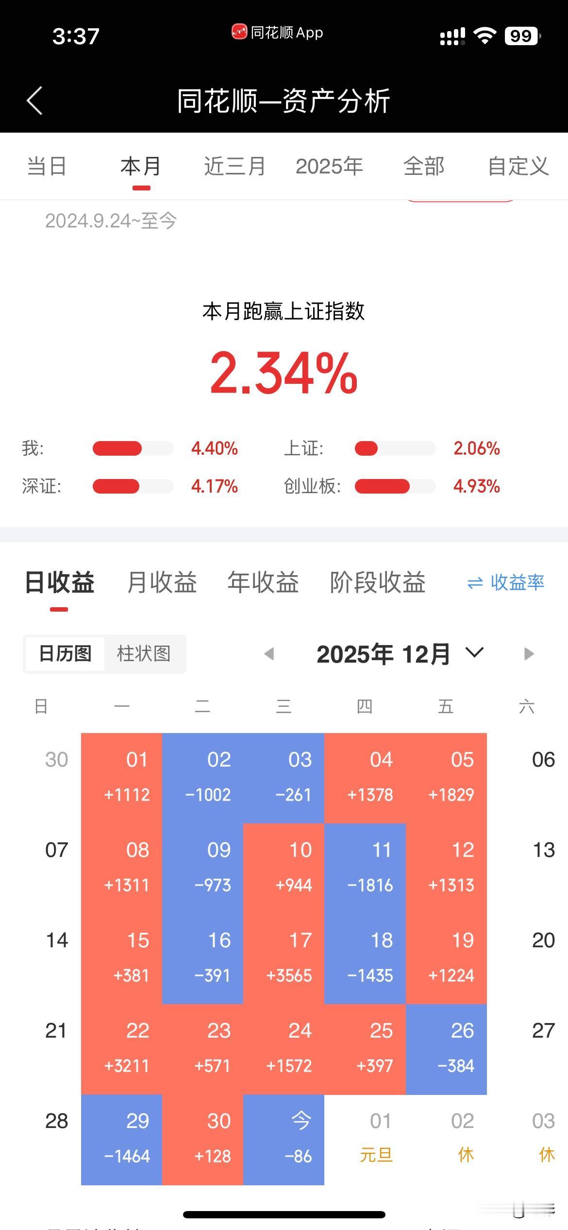 下午没有等来红包[酷拽],也没有操作。持股过年了。收盘绿了几十块。本月还行,今