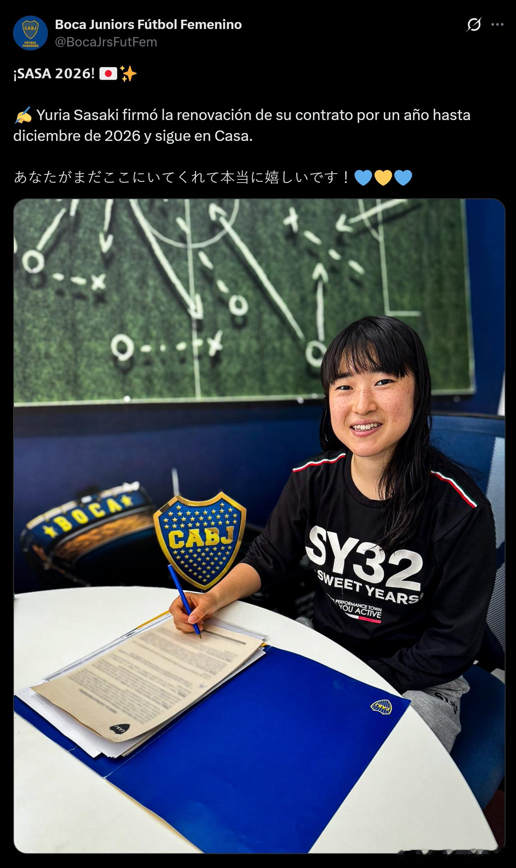 【海外挑战】Yuria Sasaki(佐々木優梨亜)与博卡青年女足续约一年。【Yuria Sasaki(佐々木優梨亜)简介】出身:东京都生年日月:2003/5/30大学:慶應義塾大学 / 環境情報学部2023年3月,她从澳大利亚的Essendon Royals(隶属VPLW联赛,州级半职业联赛)转会至博卡青年队,并在对阵河床的比赛中完成首秀。