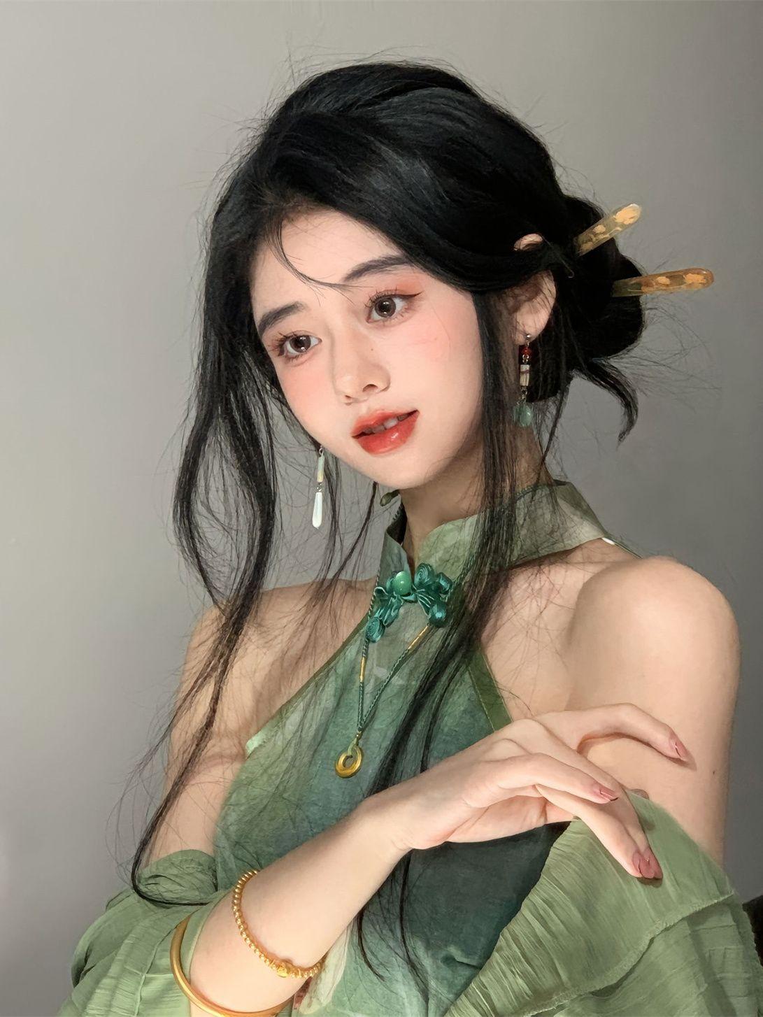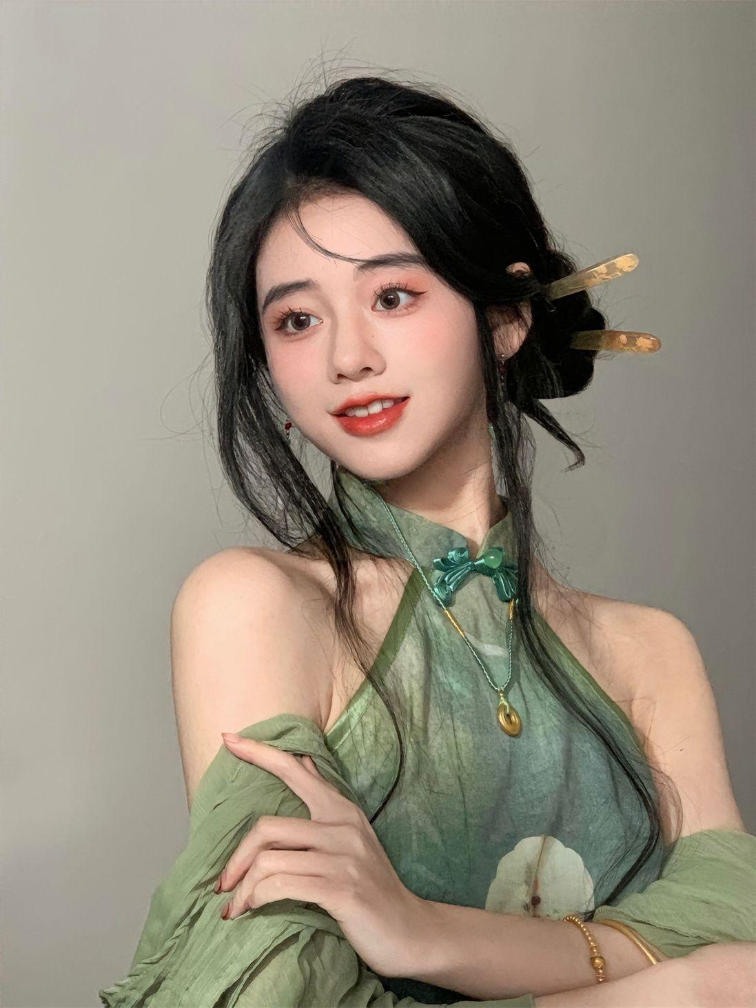 轻盈舞姿,古典韵味,一枝绿叶,悠然自得。国风正当红