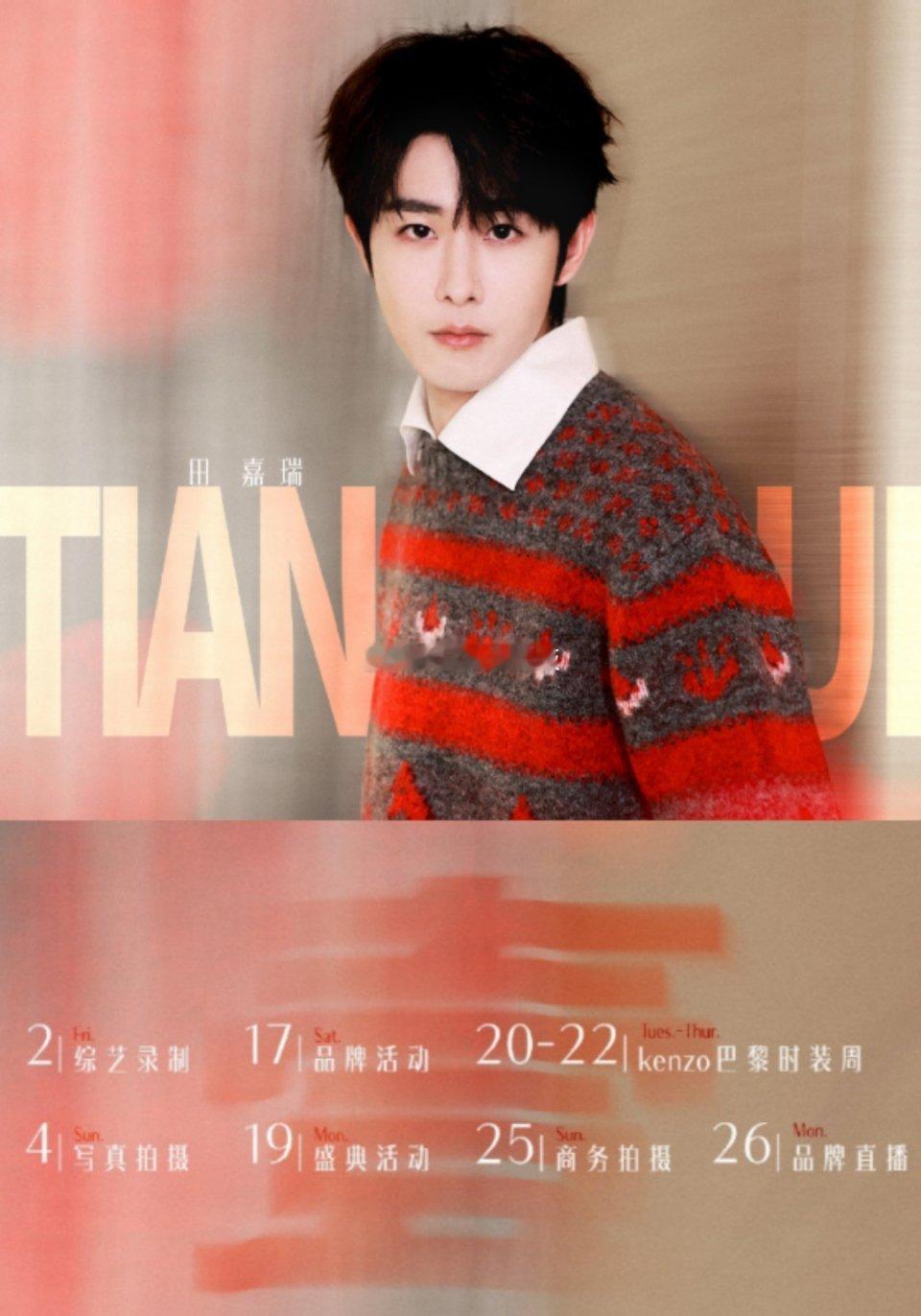 田嘉瑞一月行程图来了。田嘉瑞