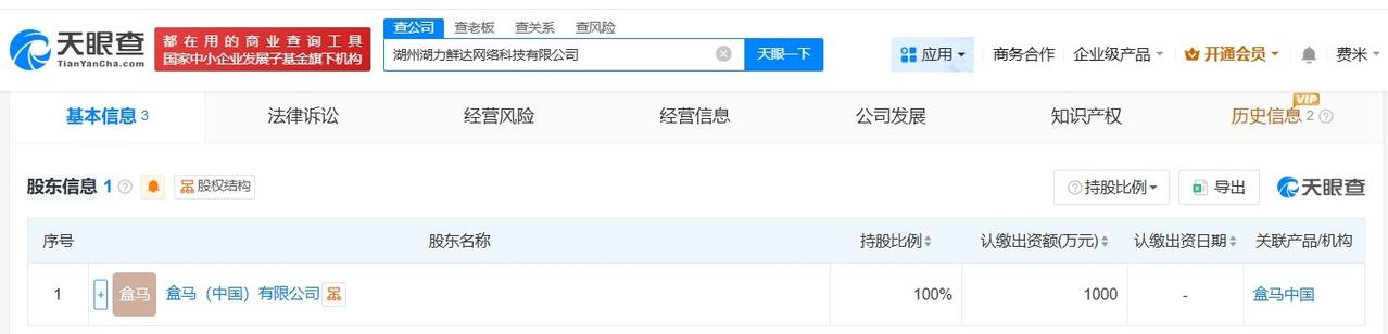 盒马在湖州成立网络科技公司注册资本1000万 天眼查App显示,12月30日,湖州湖力鲜达网络科技有限公司成立,法定代表人为冷智勇,注册资本1000万人民币,经营范围包括货物进出口、票务代理服务、餐饮管理等,由盒马(中国)有限公司全资持股。 天眼查信息: