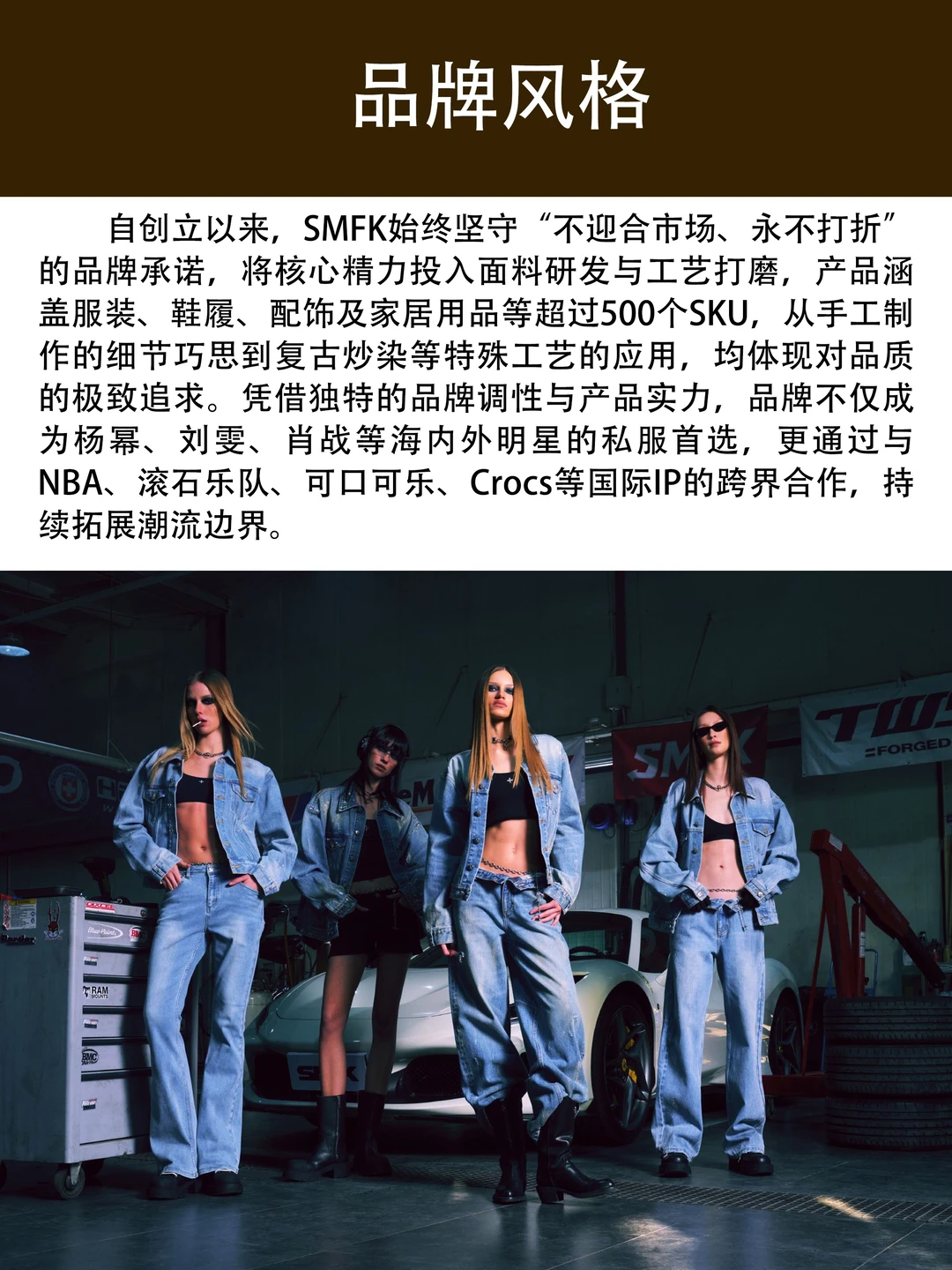 作为扎根本土的中高端潮流品牌,SMFK始终以“中国设计,中国制造”为底气,[赞R]在坚守原创精神与品质底线的同时,持续向世界传递东方潮流力量,成为中国原创设计师品牌走向国际舞台的重要代表。