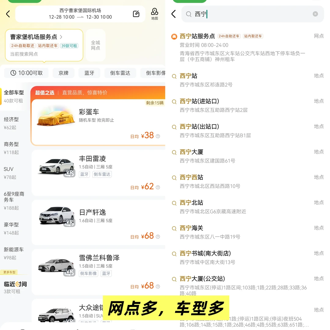 ▪️ 租车推荐我们一直在用的神州租车,车型多,去西宁我们推荐租SUV,空间大,很能放还坐得贼舒服,取还点覆盖广(尤其机场、高铁站和市区核心点),而且还有7*24小时的客服,是我们长途和喜欢开夜车的定心丸。