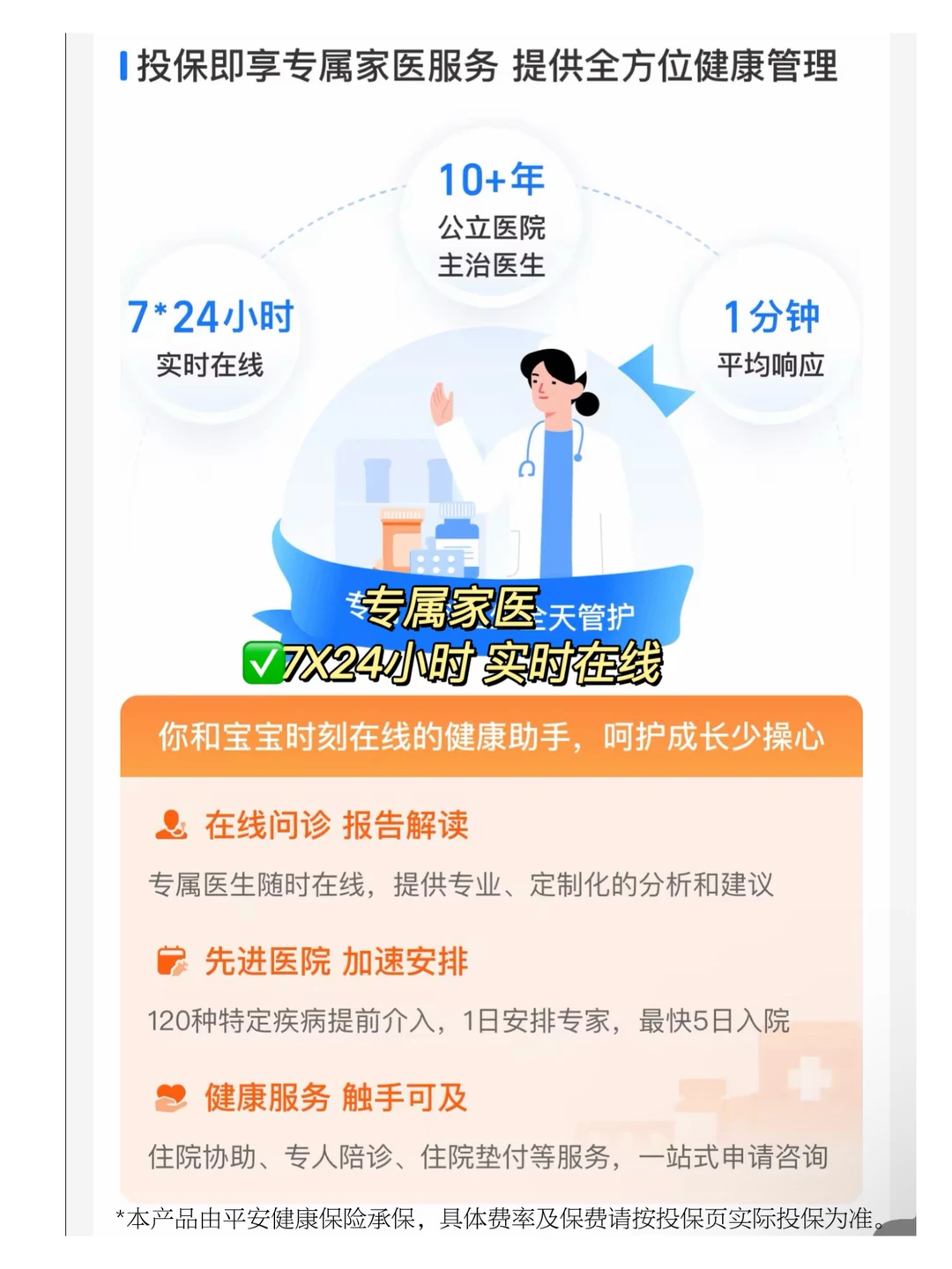 住院保障也全面,二级及以上公立医院都能覆盖,还有在线家医服务,路上宝宝有点小哭闹、小不适,随时能咨询专业医生,不用瞎着急👩⚕️~