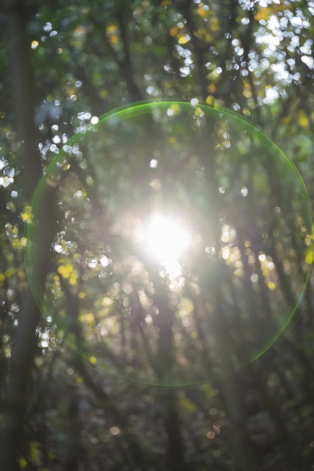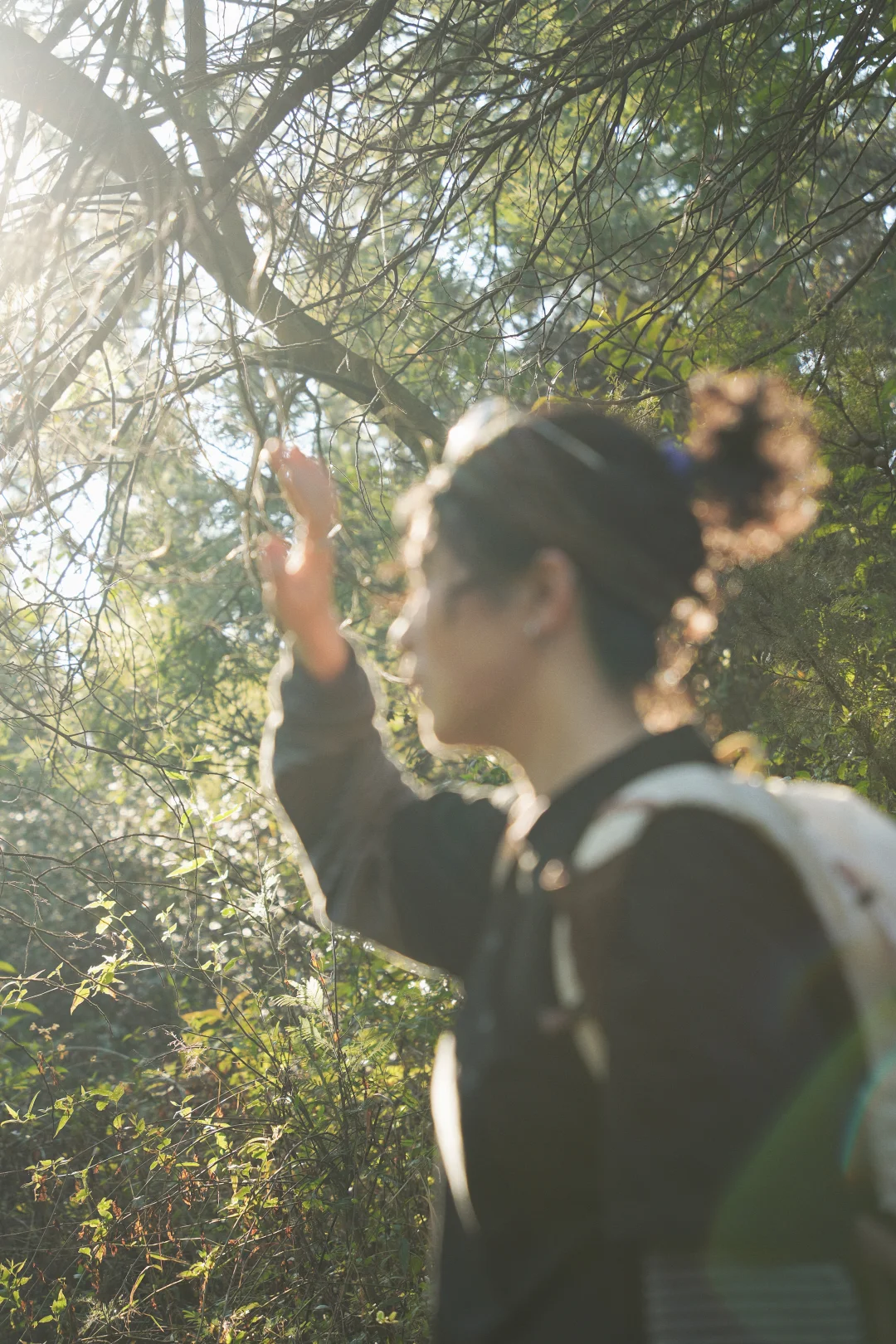 下午的太阳穿过树枝缝隙
