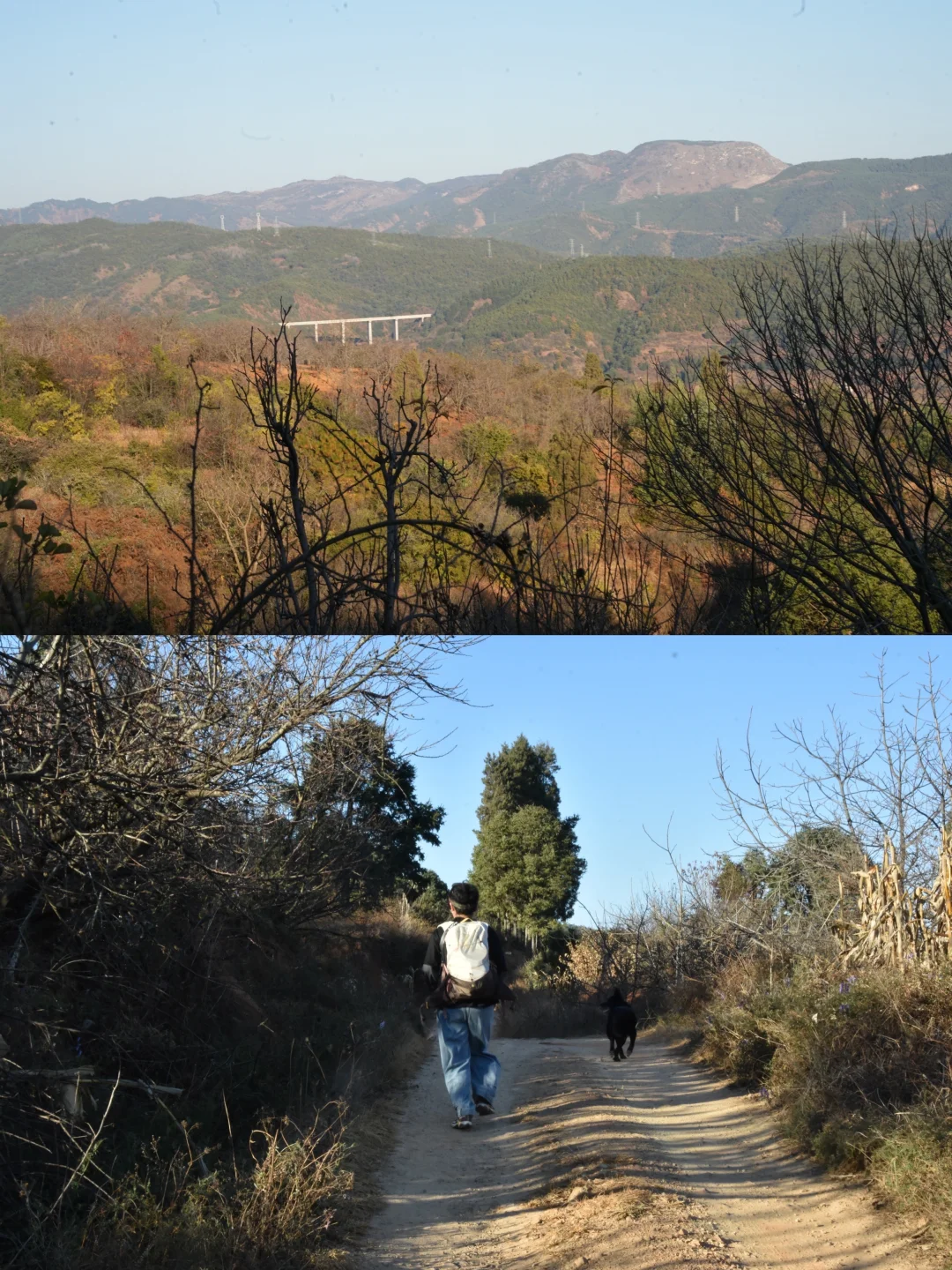 2️⃣ 古道结束和机耕道岔路,朝北走还有轨迹一直到白沙箐,适合遛狗,跑步,下次再去探索啦