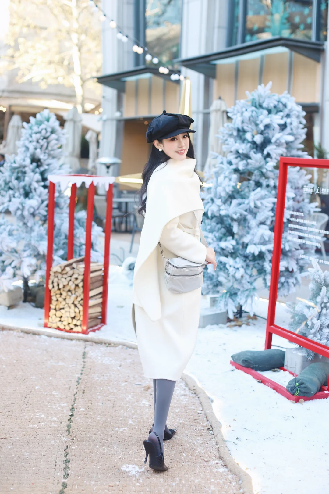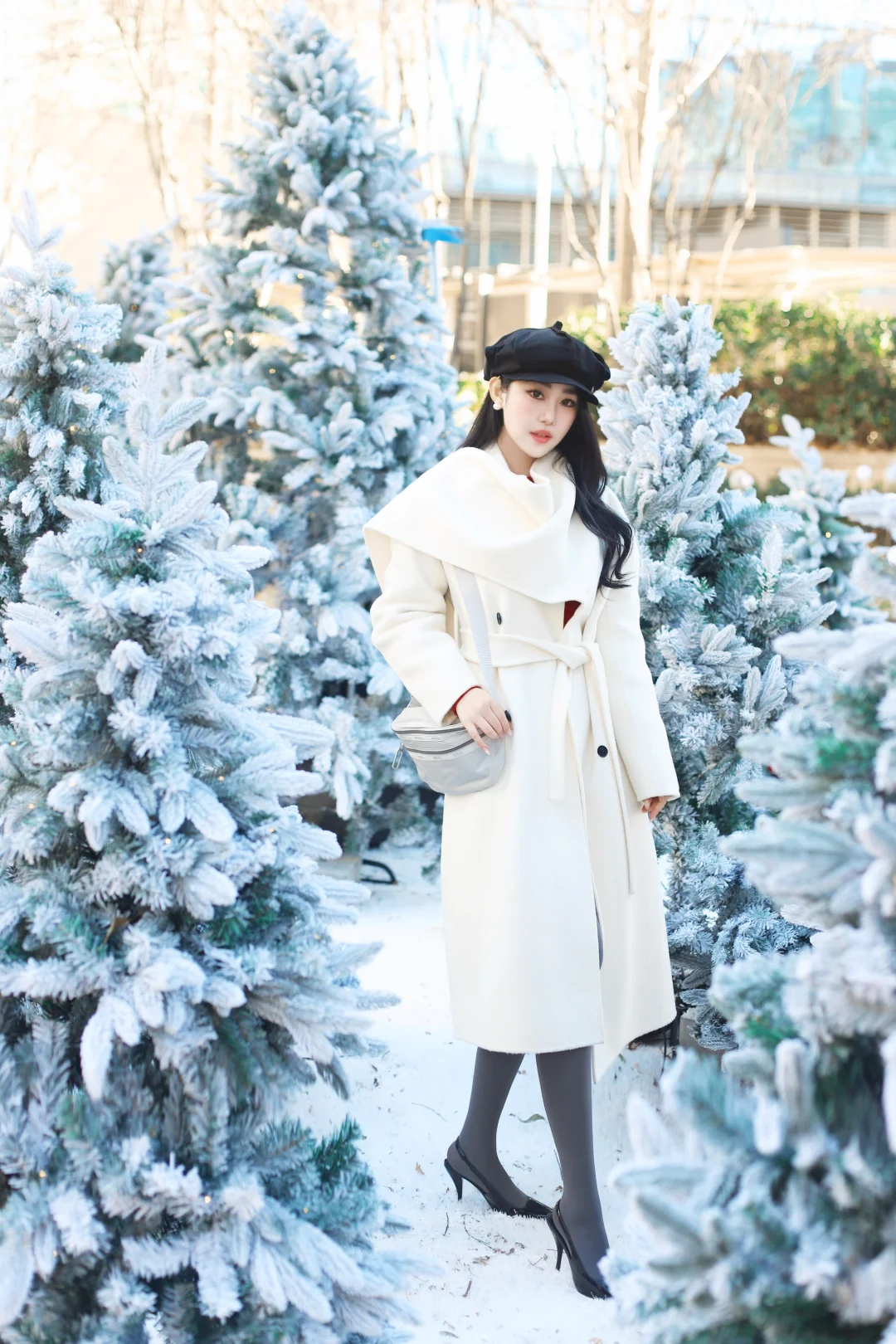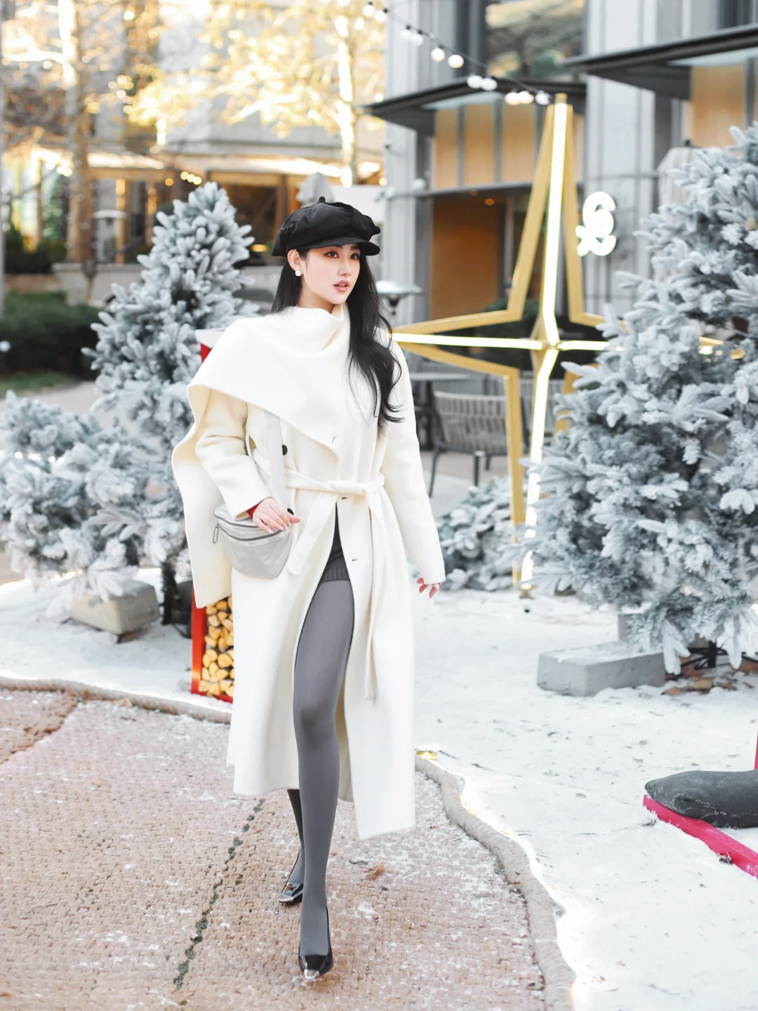 初雪穿搭 初雪的记忆 白色大衣 穿成这样迎接初雪 冬日雪景拍照 厚灰袜 厚灰美学 冬季氛围感